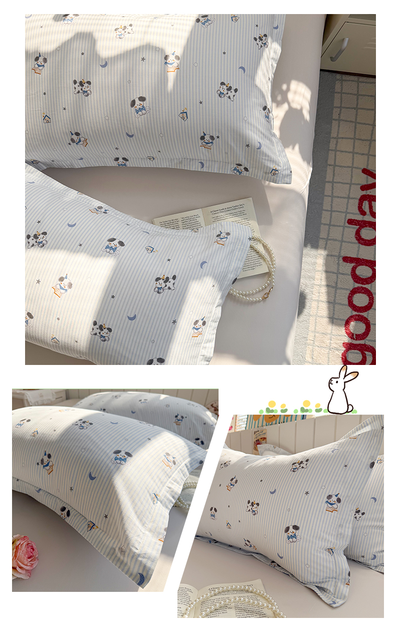 百寐 2026新款13372全棉信封印花系列枕套 泡芙狗