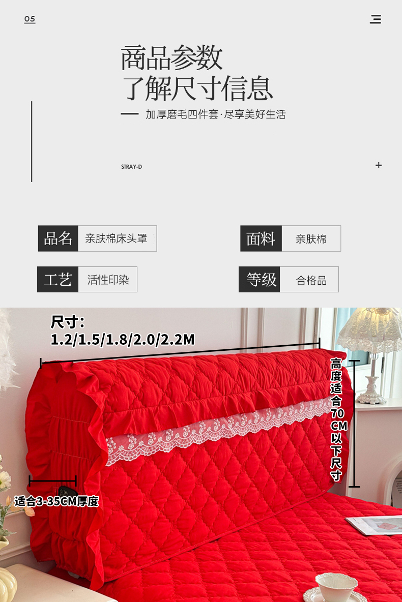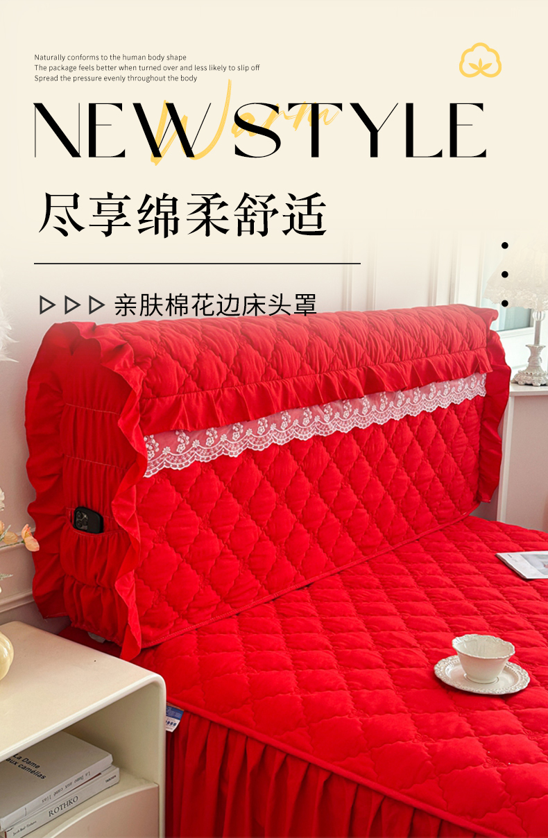 商品名称:怡源梦 2026新款A类亲肤棉全包夹棉床头罩-蝴蝶飞飞系列 大红