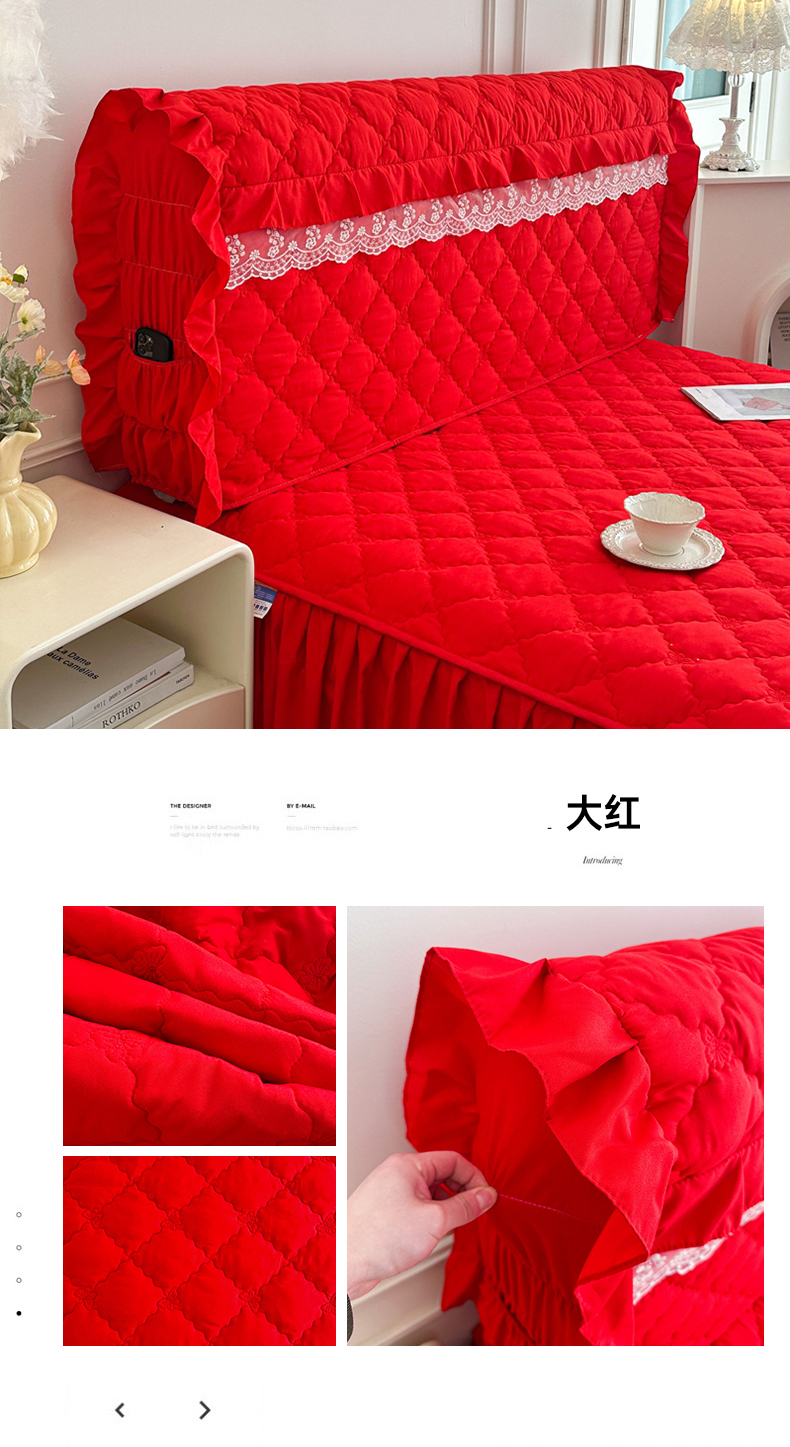 (总)源梦家纺 2024新款幸运草夹棉单床裙,纯白,大红,豆沙,粉色,灰色,兰色,米黄,玉色