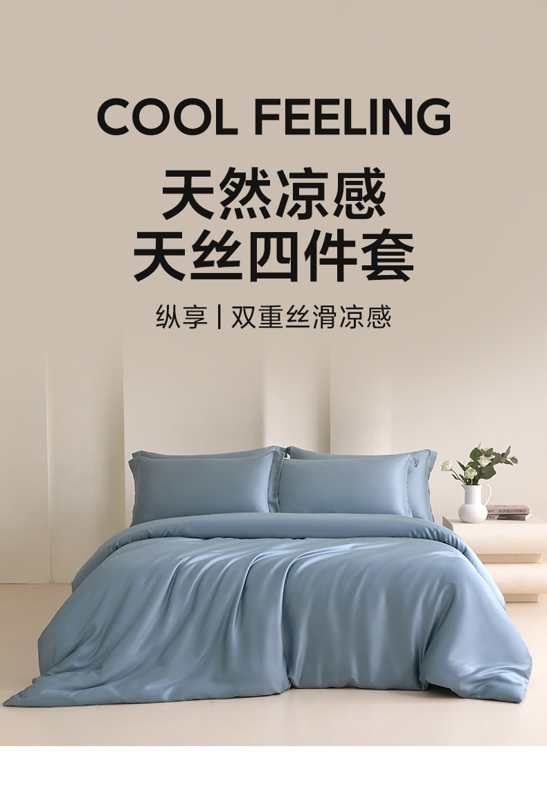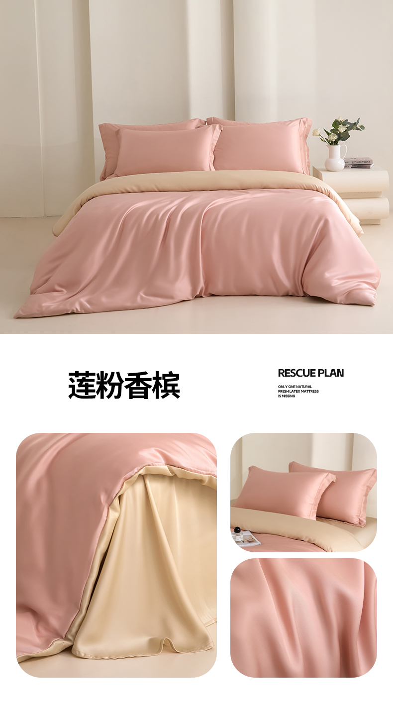 (总)禧澜庭 2026新款纯色夏季凉感天丝四件套莱赛尔纤维冰丝四件套,组合图,风信紫,静雅蓝,莲粉香槟,莲花粉,若草乳白,夏云灰,香香槟,雅蓝云灰,玉乳香槟,云朵蓝,云灰莲粉,云蓝若草
