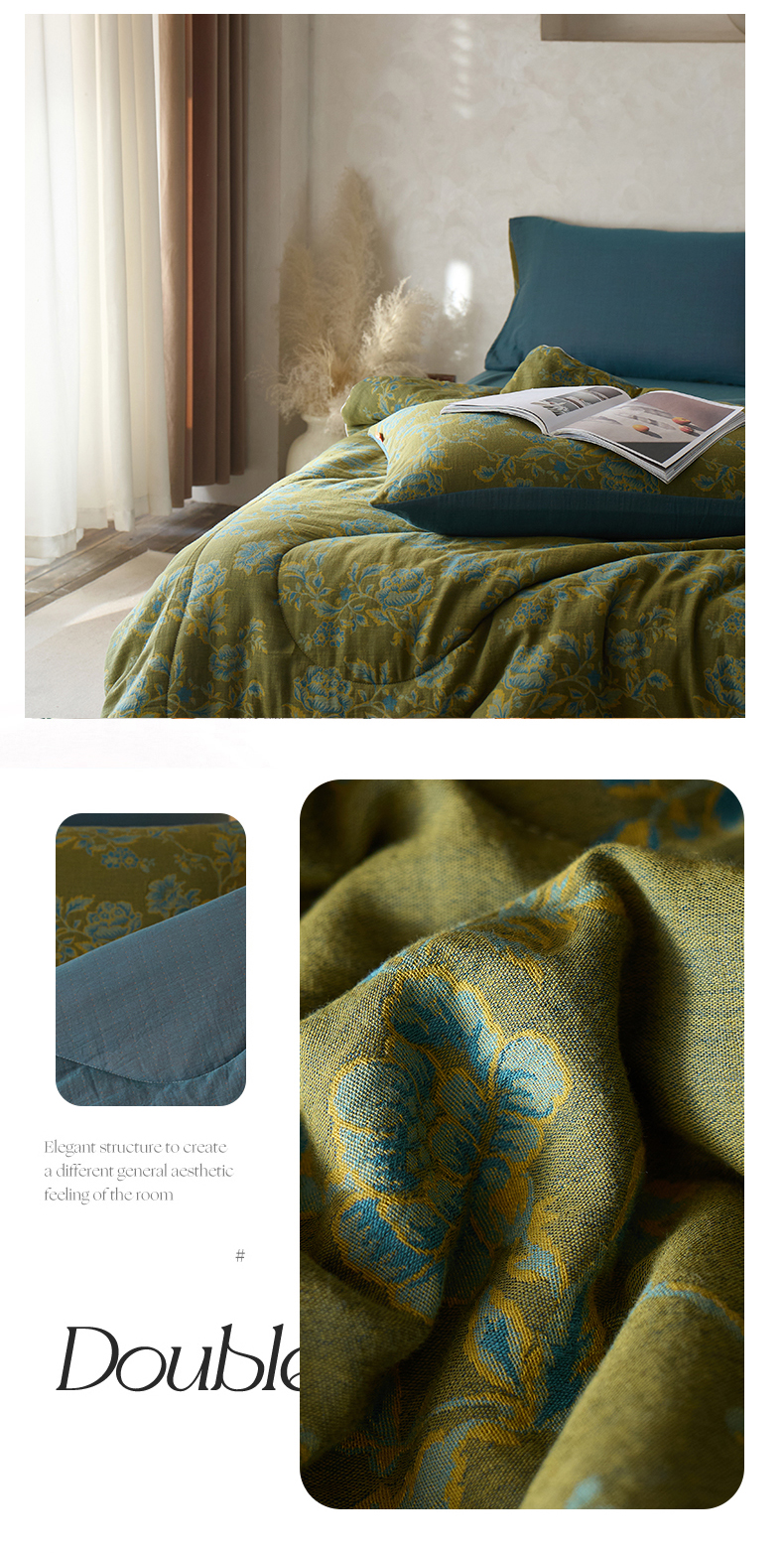 春皖家纺 2026新款全棉双层提花夏被四件套 卡拉舞曲