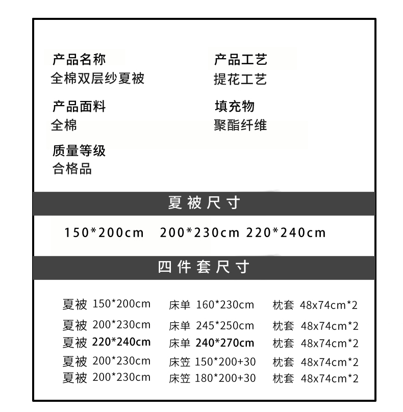 220*240cm夏被四件套