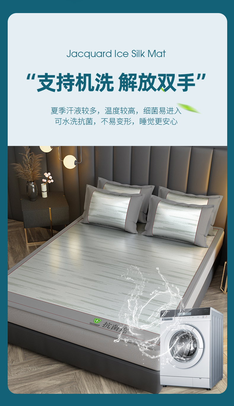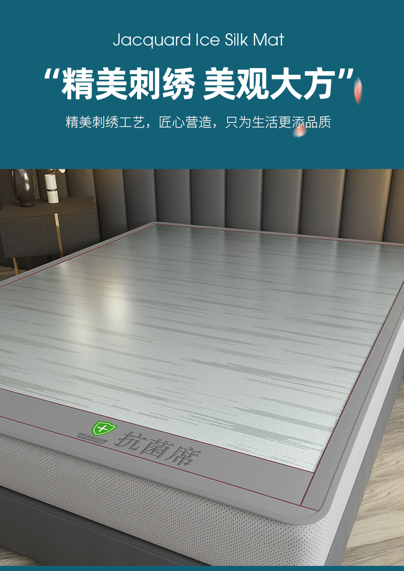 小牛席业 2026新款A加厚款-可机洗抗菌提花冰丝席(床笠款) 抗菌席-色织灰色