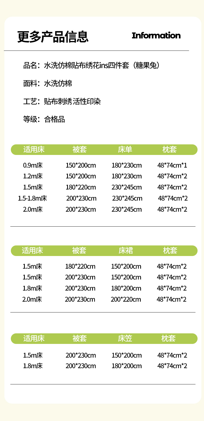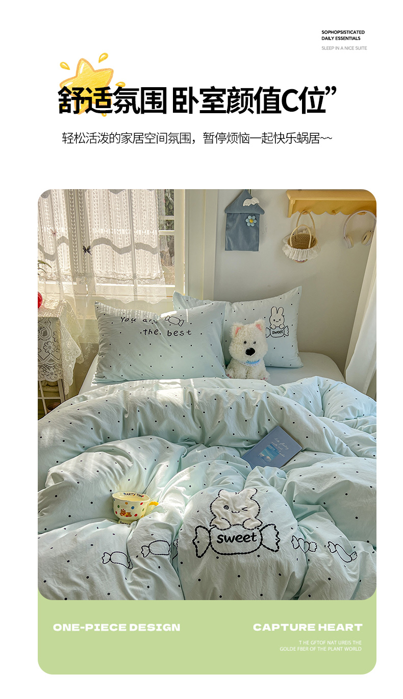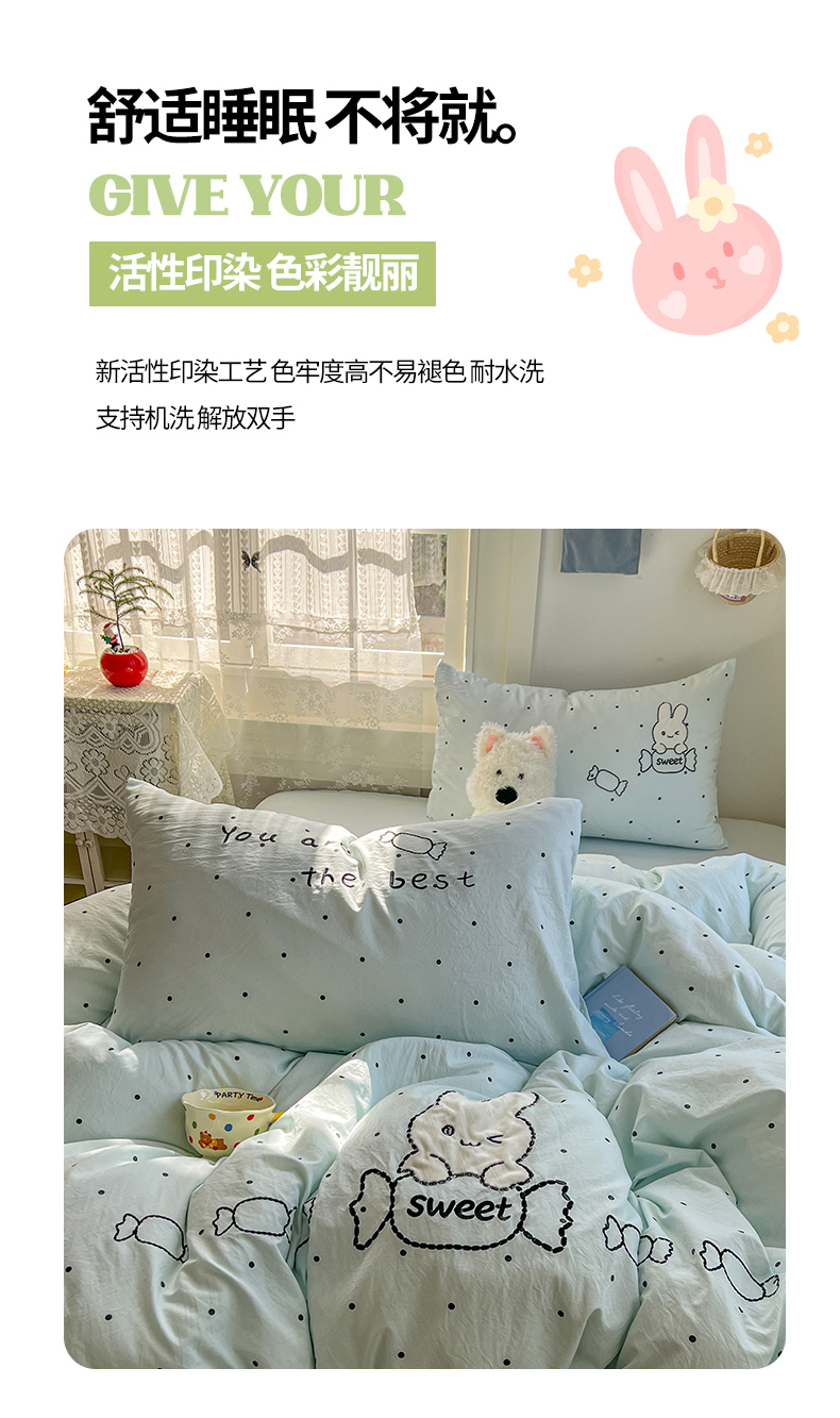 当前位置: 91家纺网 > 商品网购 > 床品套件 > 四件套 > 水洗棉四件套 > 贝凯瑞 2026新款仿棉木棉水洗棉绣花ins小清新床裙床单款四件套-糖果兔系列 糖果兔-天空蓝