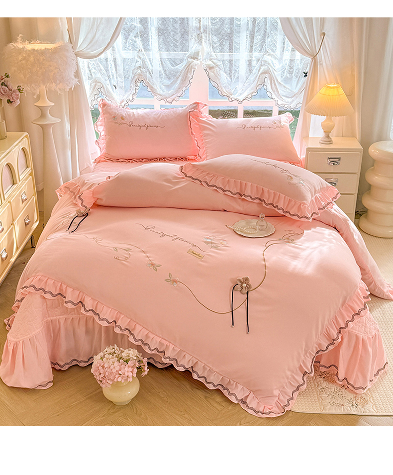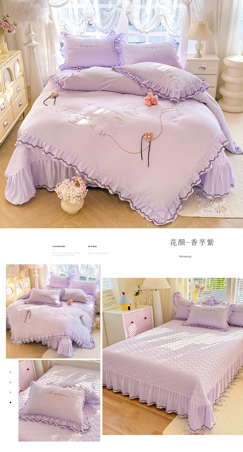 (总)漫布云 2026新款230g高克重韩版立体盘花牛奶蚕丝绒绣花四件套床裙款被套-洛丽塔系列,洛丽塔-嫩黄 ,洛丽塔-香芋紫,洛丽塔-珍珠粉, 洛丽塔-婴儿蓝