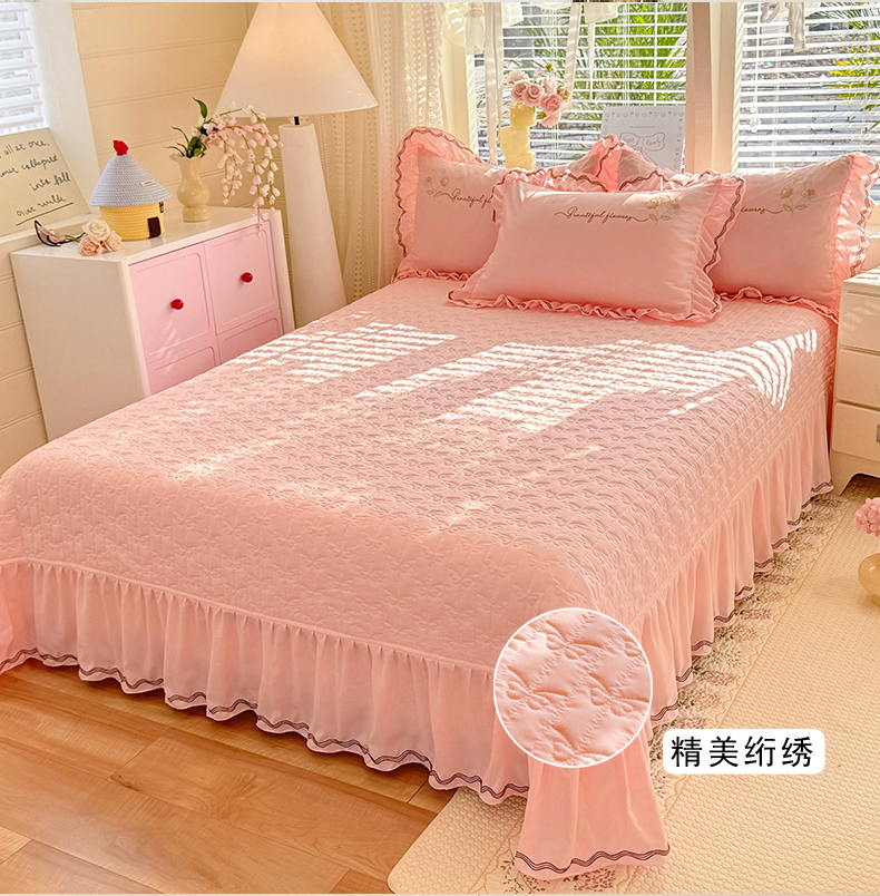 漫布云2026秋冬新款11斤230g全消光牛奶绒夹棉床盖款四件套纯色蕾丝花边刺绣床裙款床盖,蝶恋花-梦幻紫, 蝶恋花-嫩黄, 蝶恋花-新芽绿 ,蝶恋花-婴儿蓝 ,蝶恋花-樱花粉