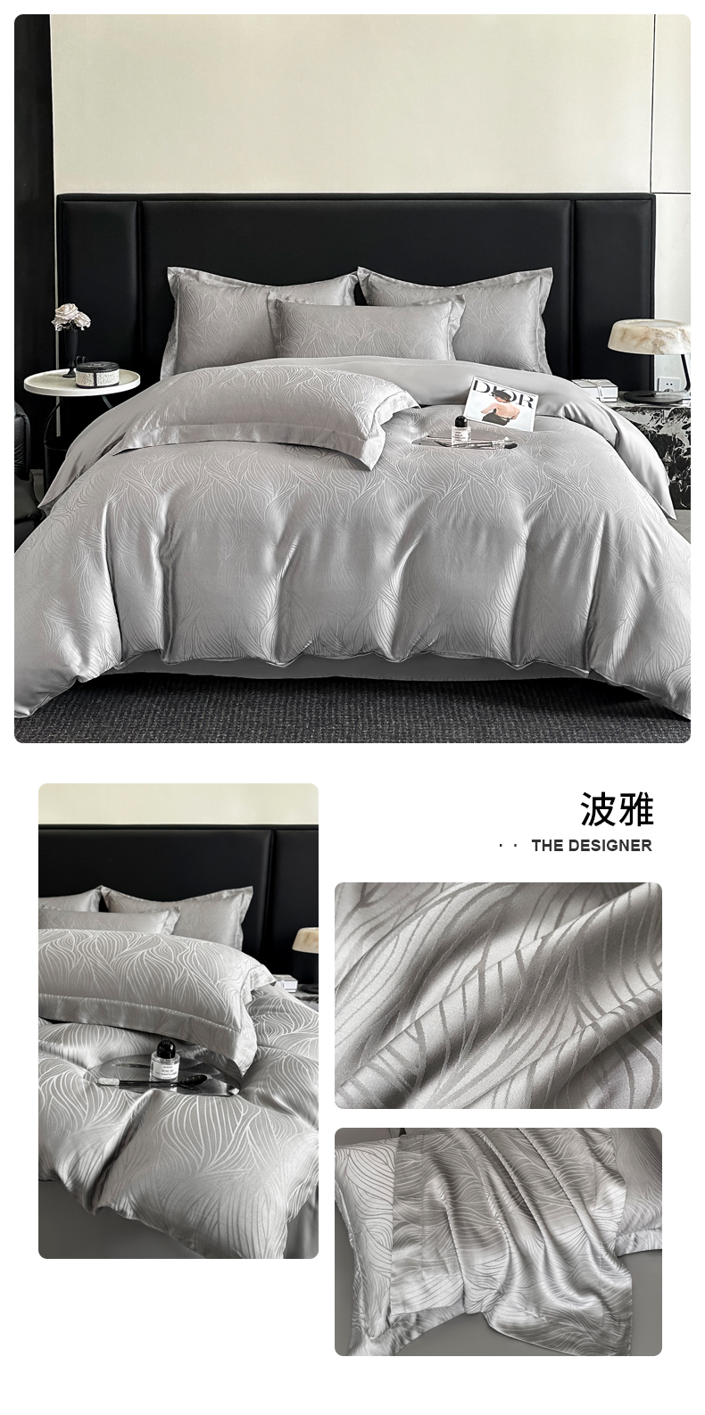 商品名称:慕晨 2026新款莱赛尔提花被套四件套高级简奢款天丝4件套直播热款 迷离