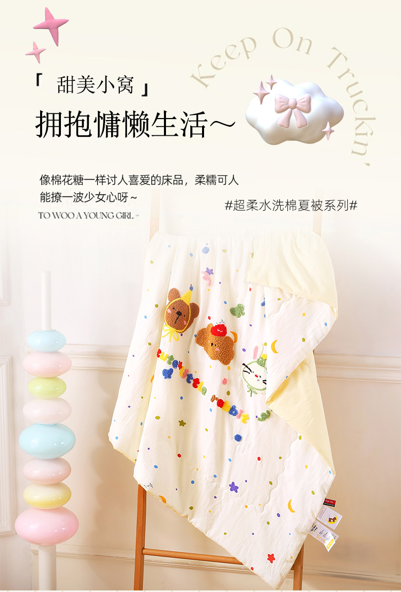 商品名称:梵克保罗 2026新款儿童场景毛巾绣超柔水洗棉夏被系列 萌趣混搭