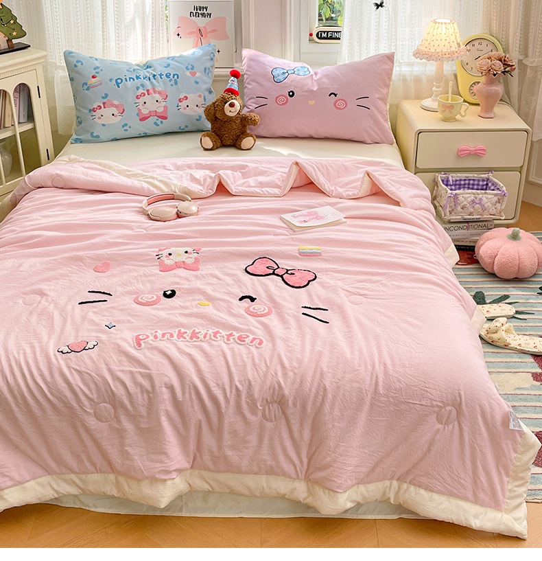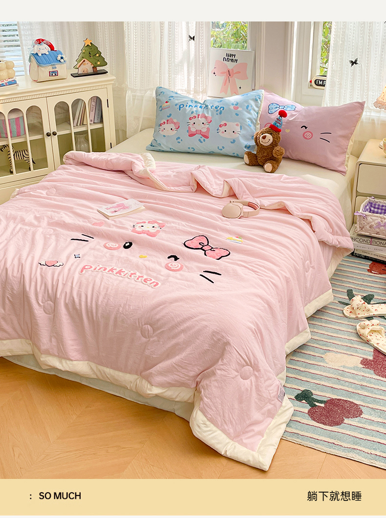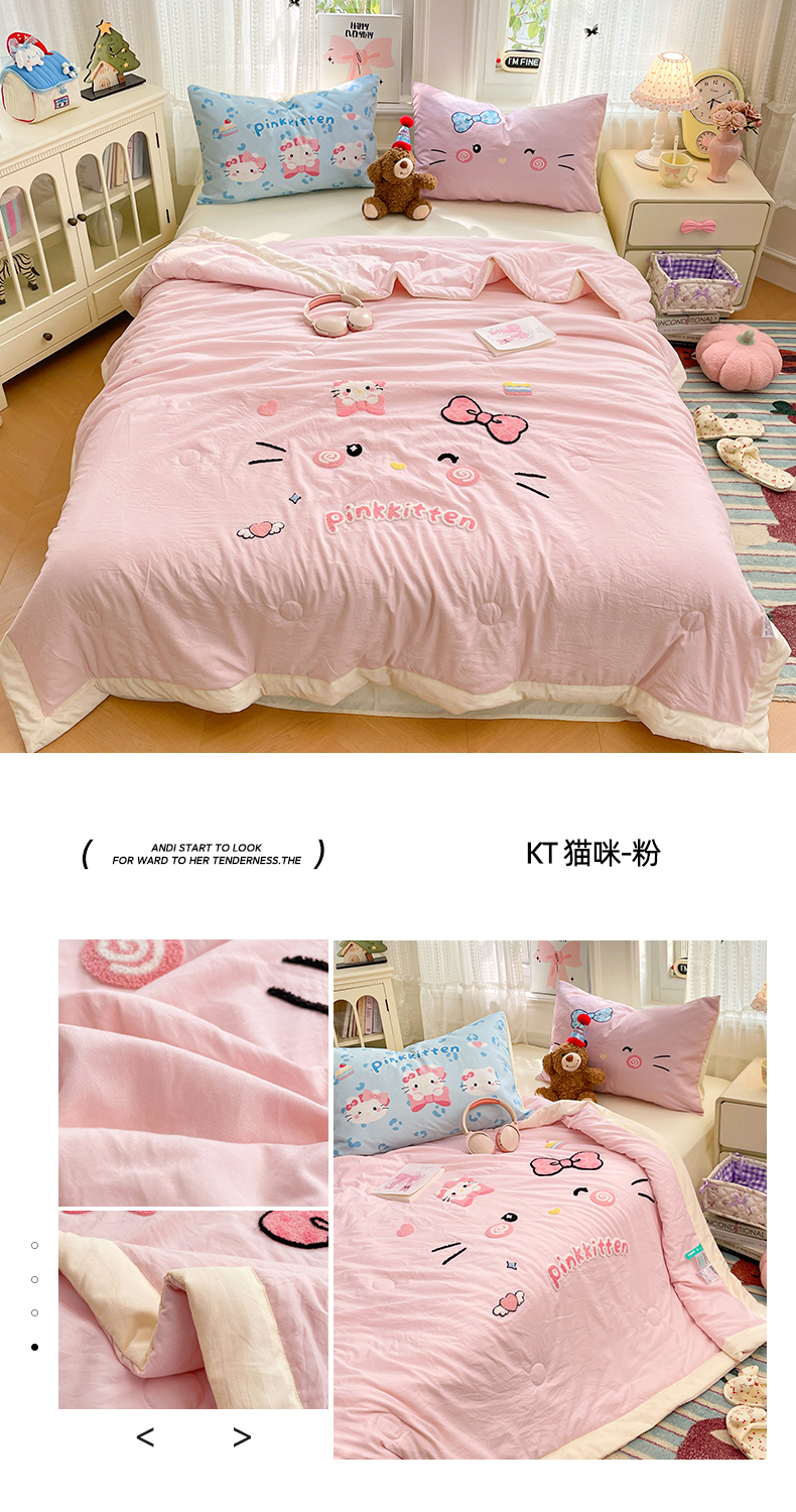 (总)康纳利 2026新款加厚水洗云朵棉大版毛巾绣夏凉被空调被印花卡通夏被四件套,KT 猫咪-奶黄,动物趴-蓝,喵趣派对,花田萌宠-粉,动物趴-条纹,动物趴-奶黄,花田萌宠-奶黄,蛋糕碰碰会,抹茶冰激凌,晚安猫咪,KT 猫咪-粉,组合(仅参考)