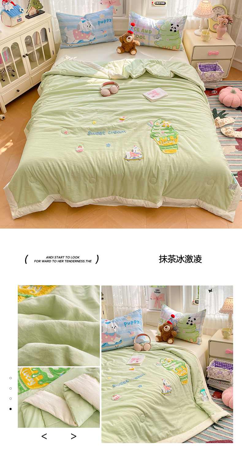 商品名称:康纳利 2026新款加厚水洗云朵棉大版毛巾绣夏凉被空调被印花卡通夏被四件套 组合(仅参考)