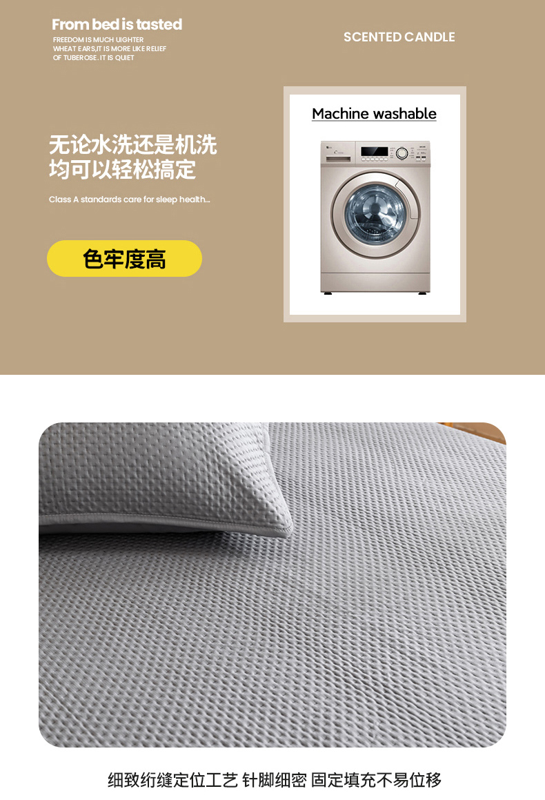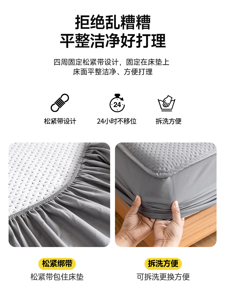 • 91家纺网 家纺一手货源 找家纺 (总)宇淳国际 2026新款美人条A类水洗棉夹棉床笠三件套,白色,卡其,奶黄,浅灰,深灰,天蓝