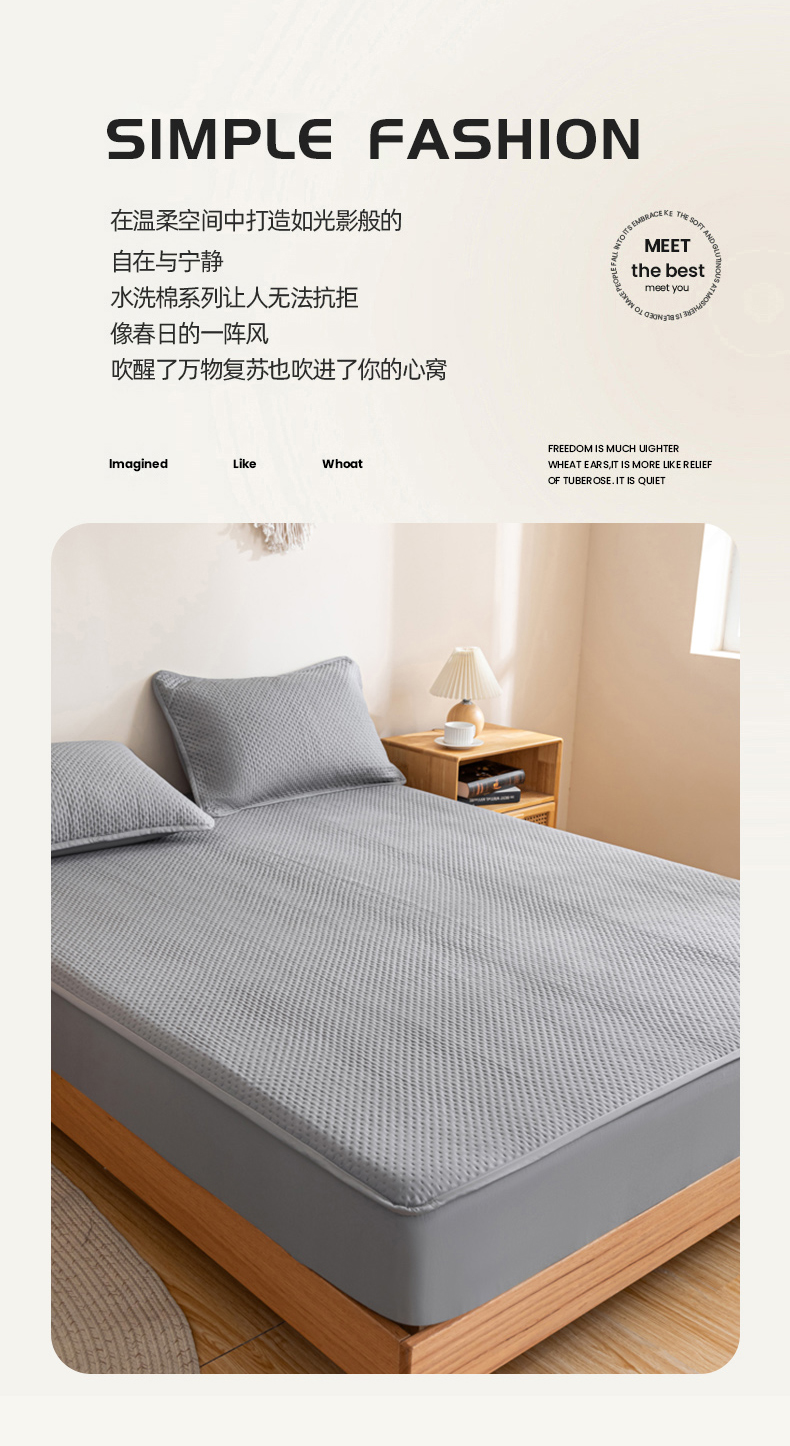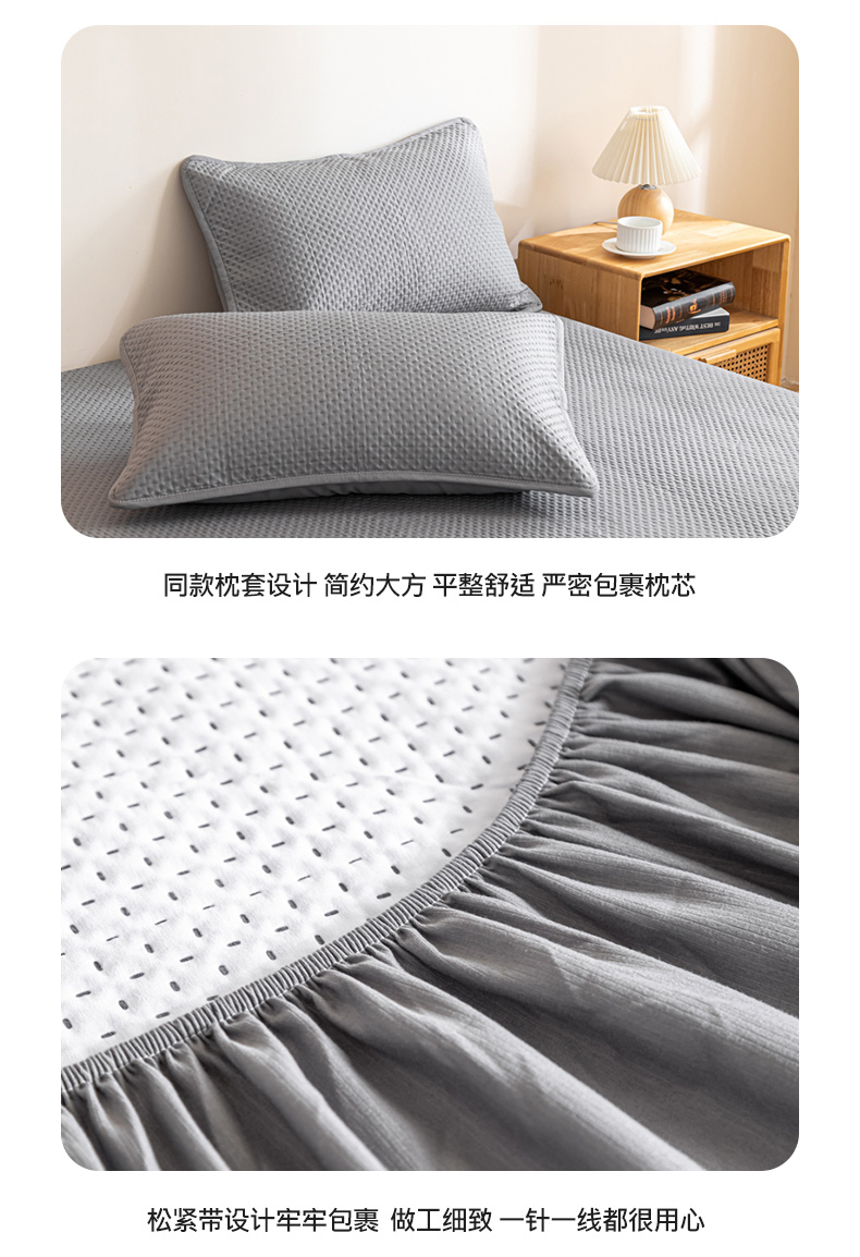 (总)宇淳国际 2026新款美人条A类水洗棉夹棉床笠三件套,白色,卡其,奶黄,浅灰,深灰,天蓝