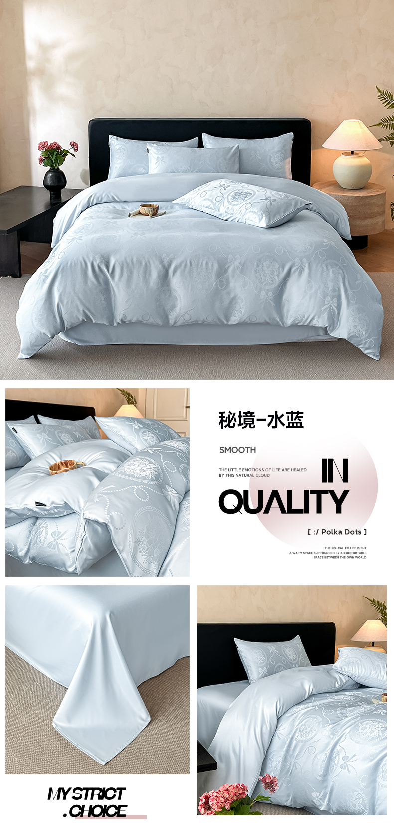 当前位置: 91家纺网 > 商品网购 > 床品套件 > 四件套 > 水洗真丝四件套 > 米彩家纺 2026新款A类水洗真丝天丝亮丝提花四件套 浮生若梦浅灰
