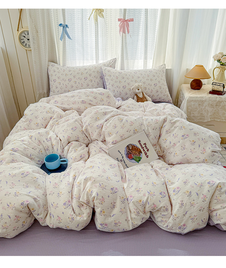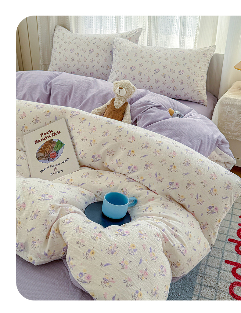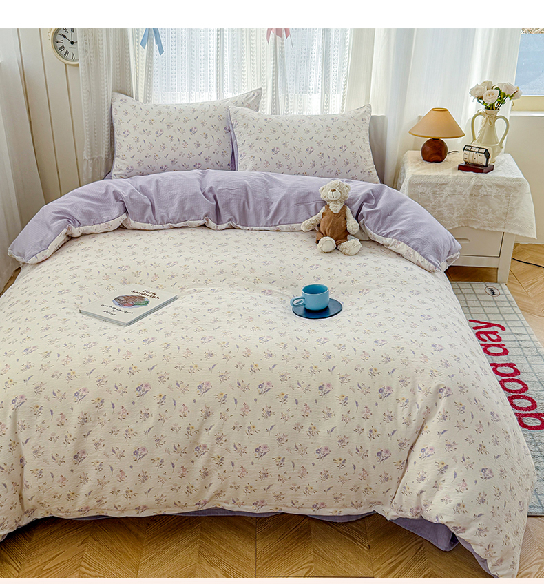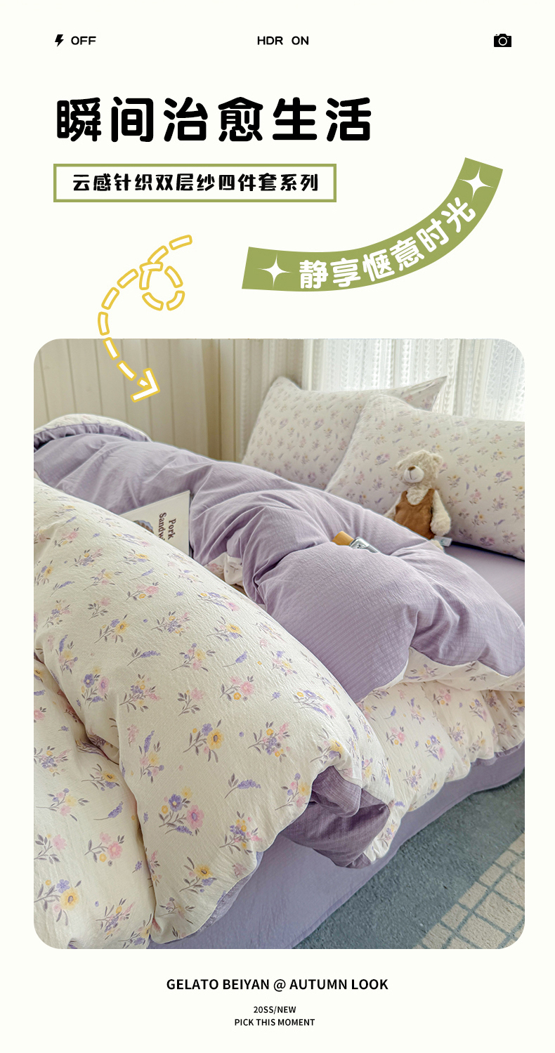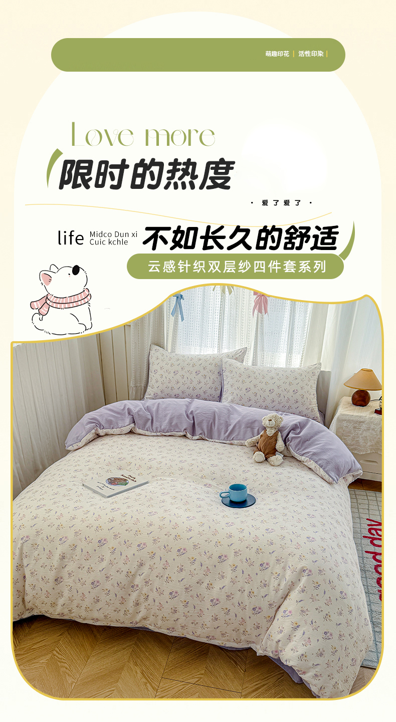 当前位置: 91家纺网 > 商品网购 > 床品套件 > 四件套 > 双层纱四件套 > 温眠家纺 2026新款云感针织提花双层纱四件套 紫薰