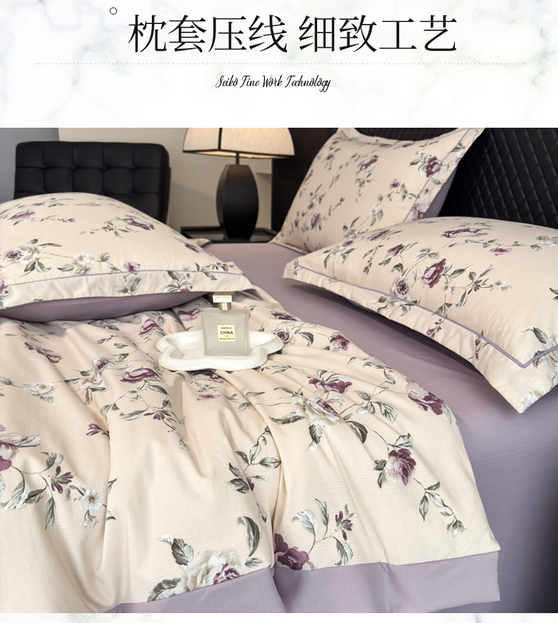 (总)赛丽雅 2026新款法式浪漫花边款公主风荷叶边高级田园风四件套,薄雾玫瑰-温莎紫,海德林-青色,海德林-紫藤色,凯西亚-丁香紫,凯西亚-香槟