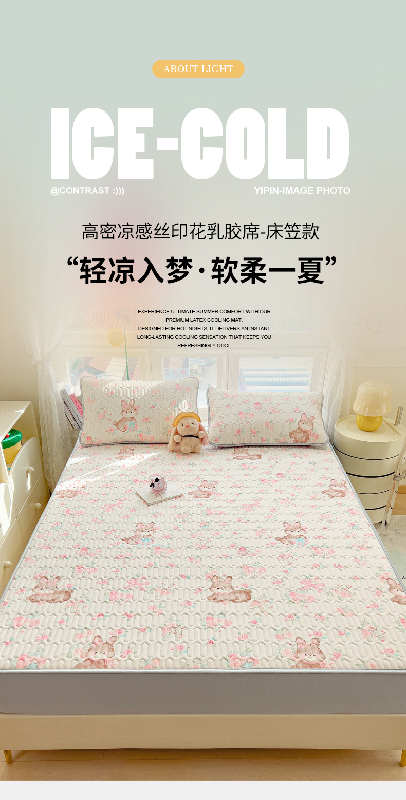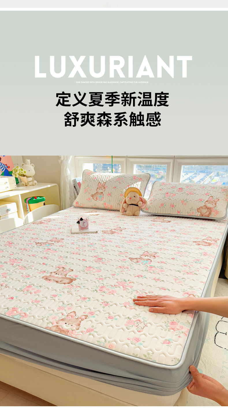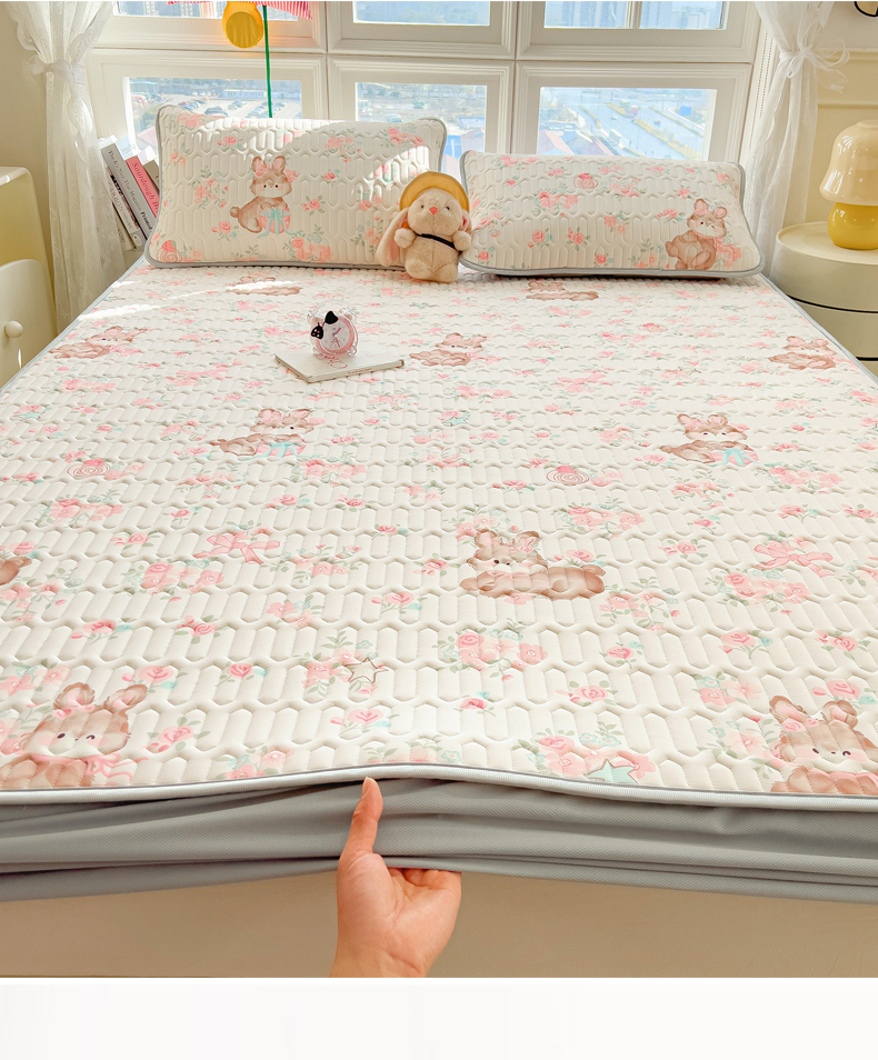 商品名称:丝羽坊 2026新款高密凉感丝印花乳胶凉席-床笠款 粉黛萌兔