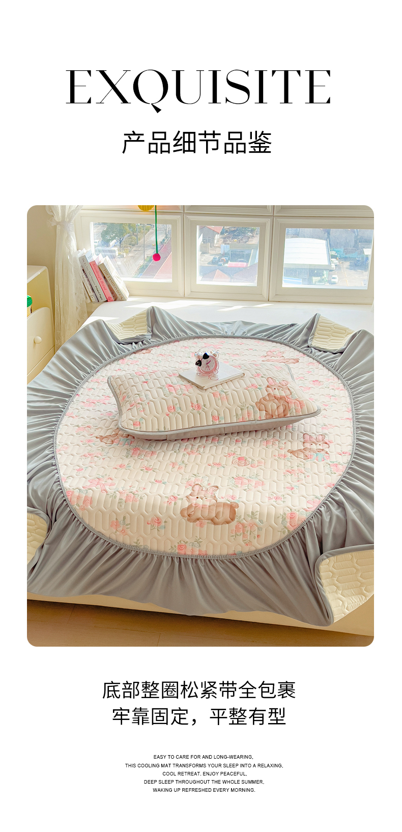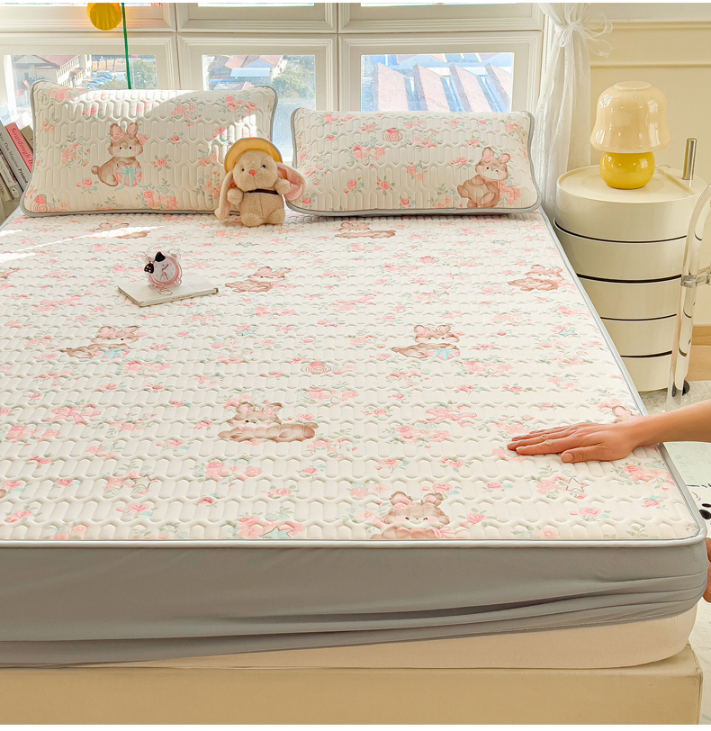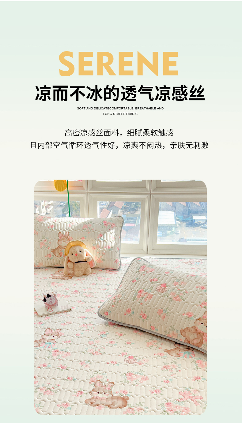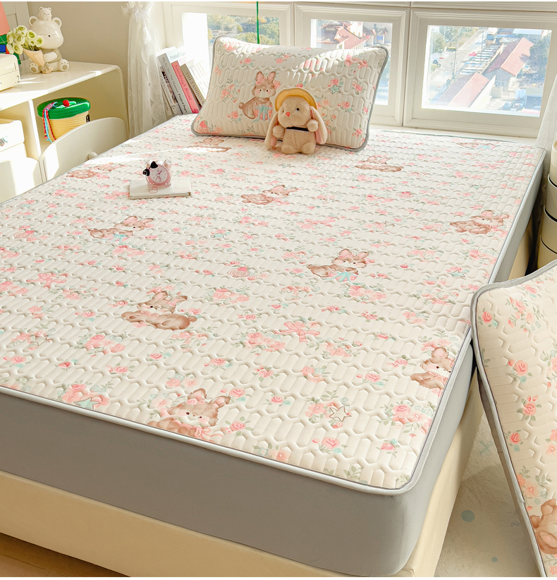 商品名称:丝羽坊 2026新款高密凉感丝印花乳胶凉席-床笠款 粉黛萌兔