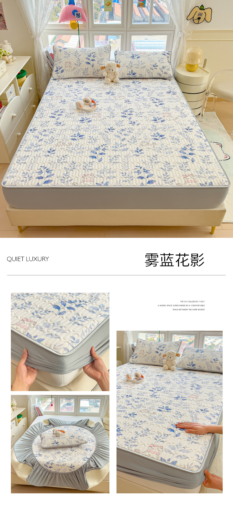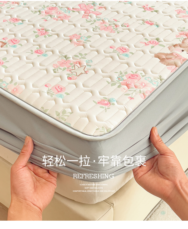 (总)丝羽坊 2026新款高密凉感丝印花乳胶凉席-床笠款,雾蓝花影,萌宠拼格,粉黛萌兔,格纹蝶影,奶白萌犬,浅蓝熊趣,糖果猫咪,彩糖点点,林间私语,薄荷甜心,爱的圈圈,春意盎然,奶绿汪仔,小白兔,小企鹅,小兔派对,星月