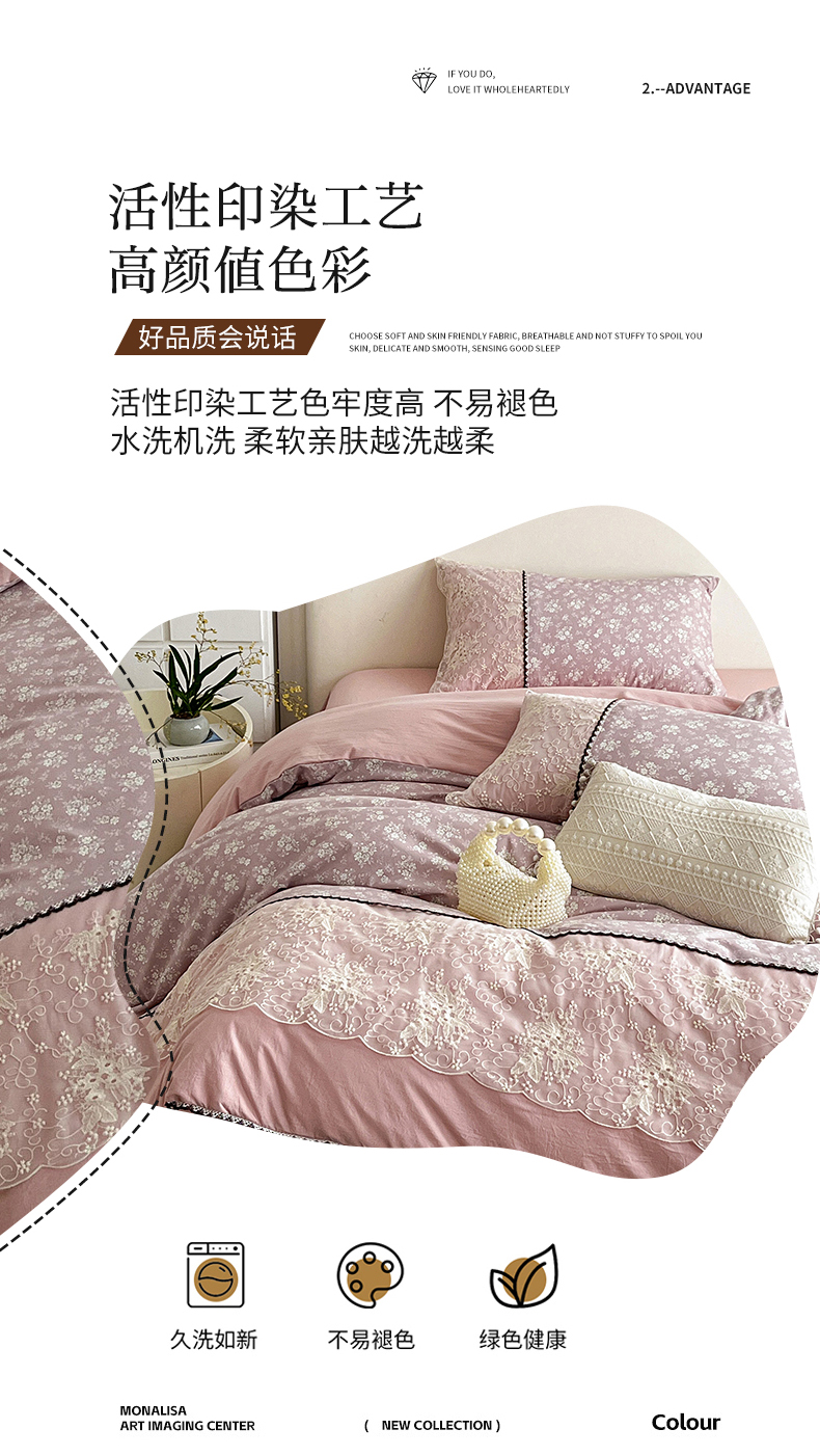 当前位置: 91家纺网 > 商品网购 > 床品套件 > 四件套 > 水洗棉四件套 > 纽缦家纺 2026新款A类105g仿棉四件套古法水洗棉套件-韩版系列 韩版-花菲花粉