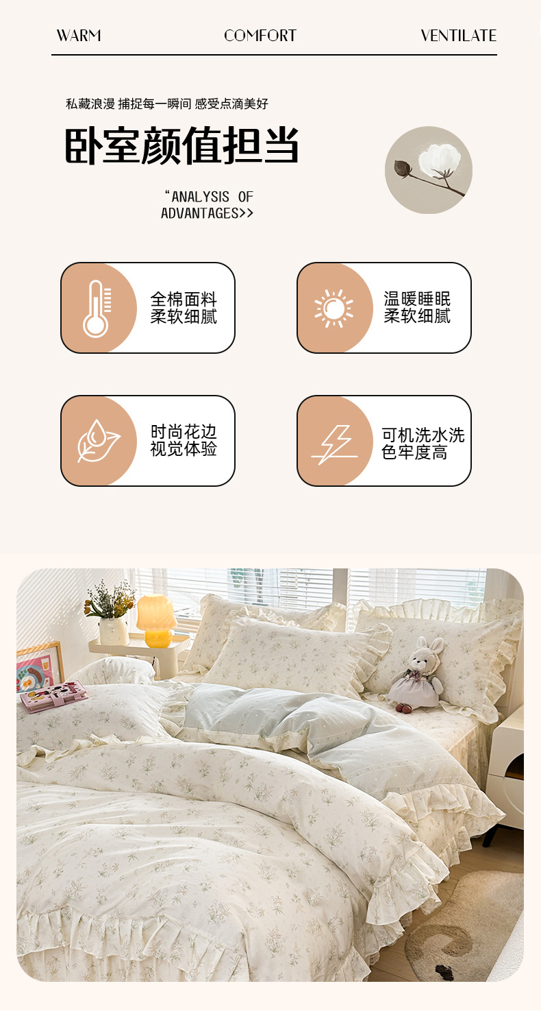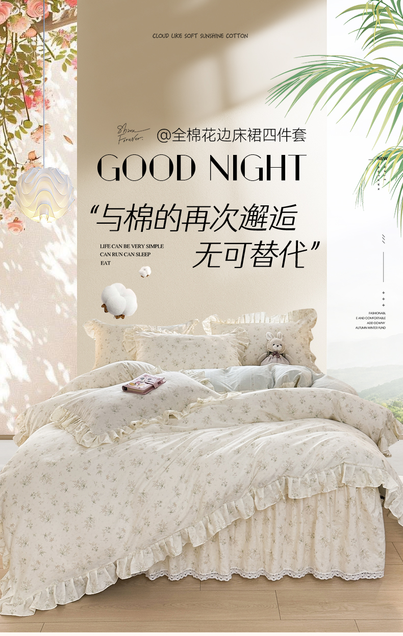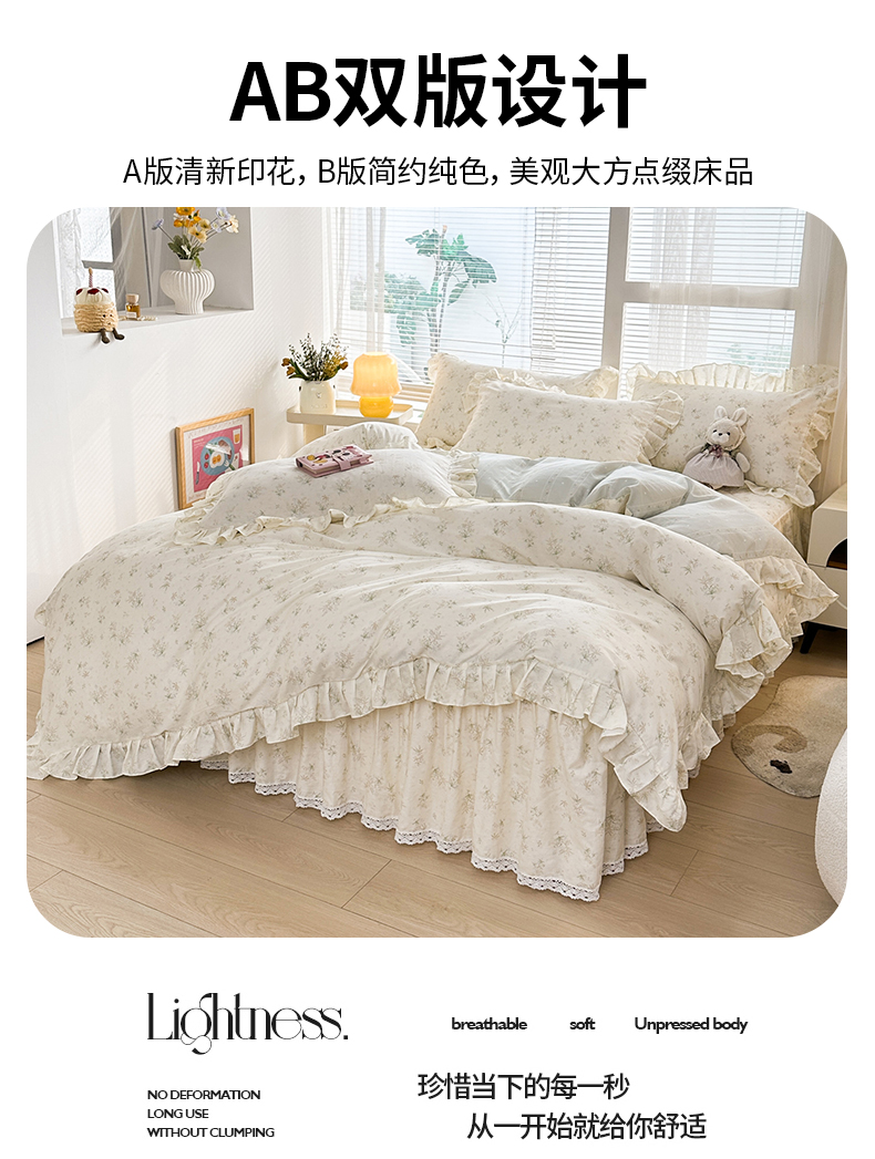 当前位置: 91家纺网 > 商品网购 > 床品套件 > 四件套 > 全棉普通四件套 > 忘忧草 2026新款全棉夹棉印花床裙四件套单被套 花仙子