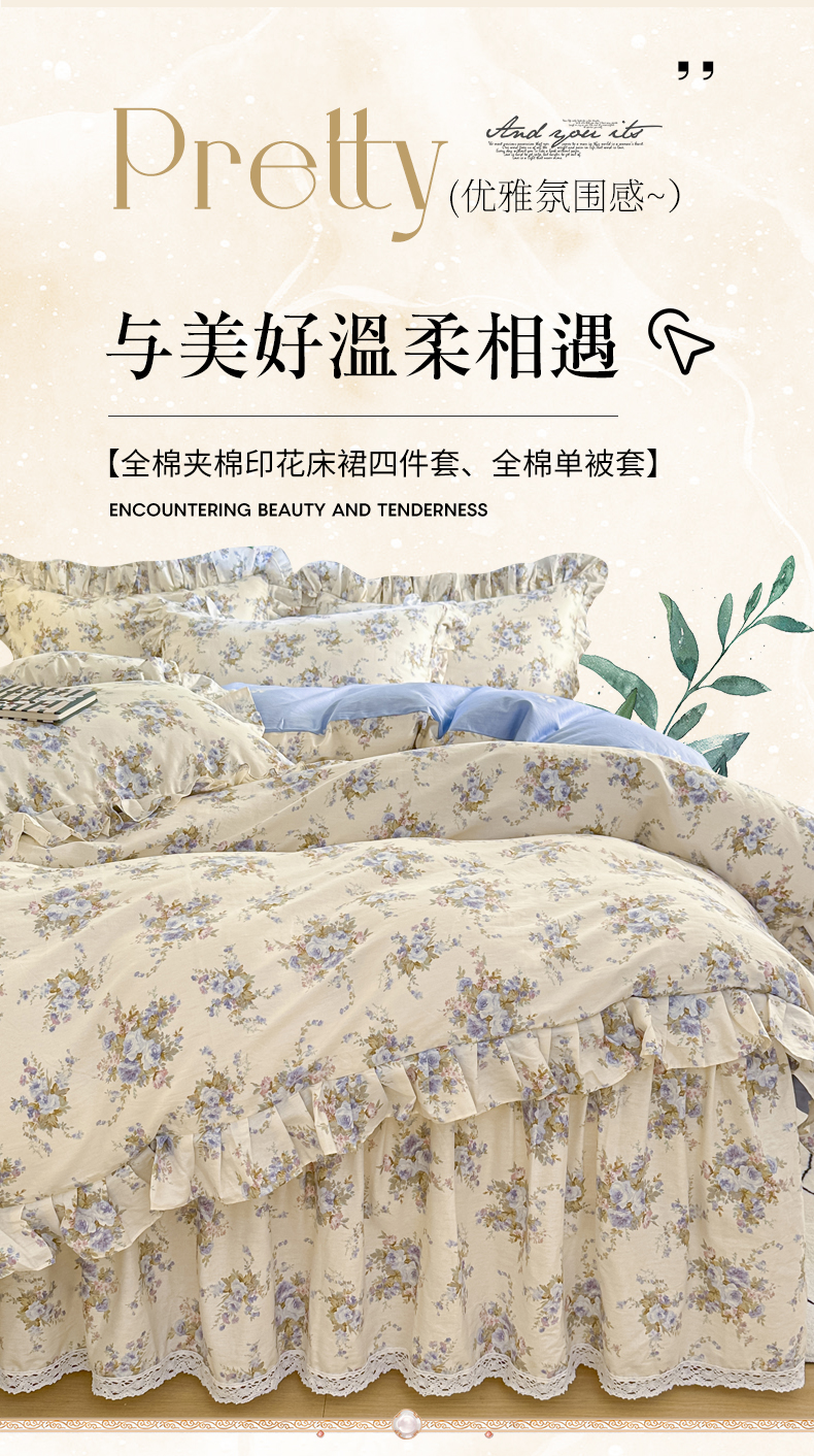 当前位置: 91家纺网 > 商品网购 > 床品套件 > 四件套 > 全棉普通四件套 > 忘忧草 2026新款全棉夹棉印花床裙四件套单被套 云溪之境