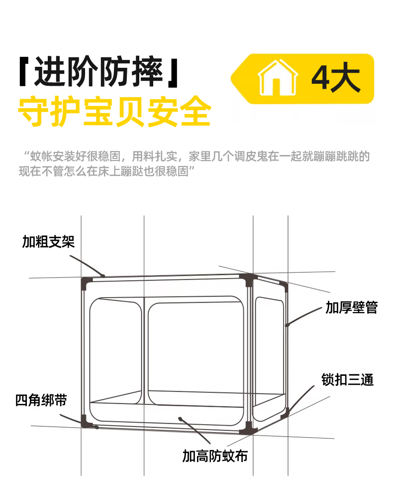 (总)飞轮海蚊帐 2026新款防摔全包防护坐床旗舰款蚊帐-Z72,梦幻,棋盘格,太空人,小熊熊