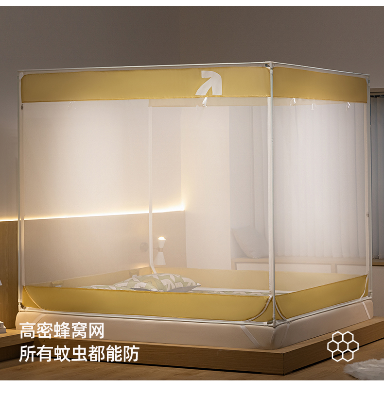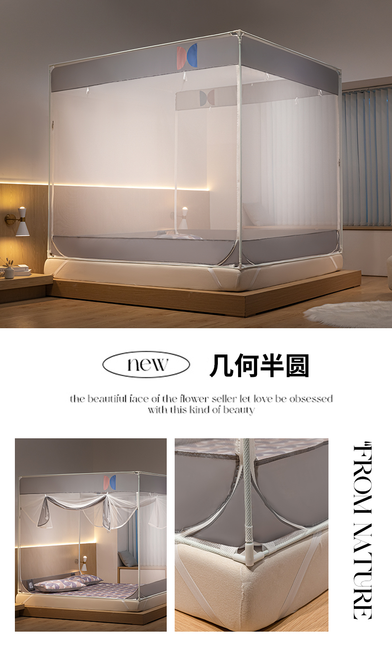 (总)飞轮海蚊帐 2023新款三开门落地遮光蚊帐-L-93,高级灰,芥末绿,奶油黄,香槟