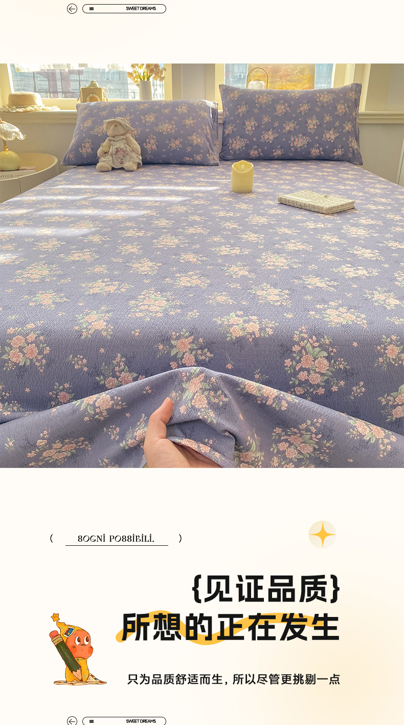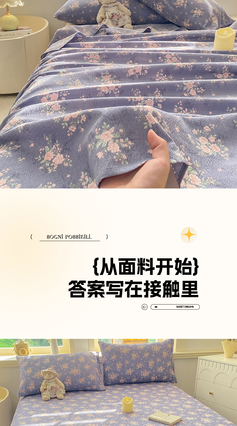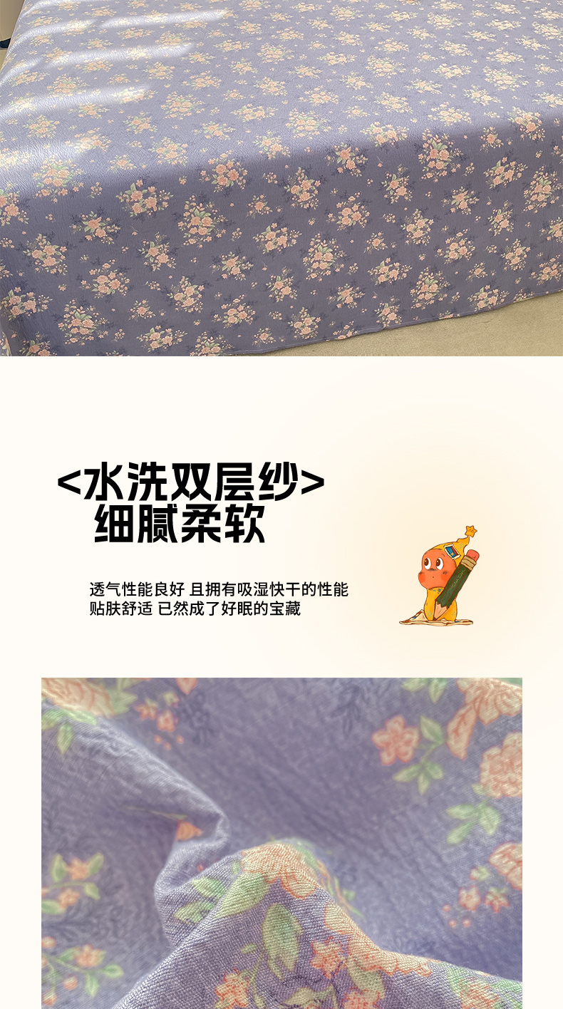 • 91家纺网 家纺一手货源 找家纺 (总)晓时候 2026新款A类云感双层纱床单三件套单品单件床单,安然入夏,缤纷水果,冰川灰,豆蔻,多彩波点,繁花,蝴蝶结-紫,花间兔,蓝色泡芙狗,洛神花间,萌宠派对,萌萌星星人,奶芙狗,柠檬黄,芊芊花语,牵牛紫,俏皮狗,青春蓝,青竹绿,甜甜西高地,甜心女孩,小确幸,星星喵,樱花粉,云朵白