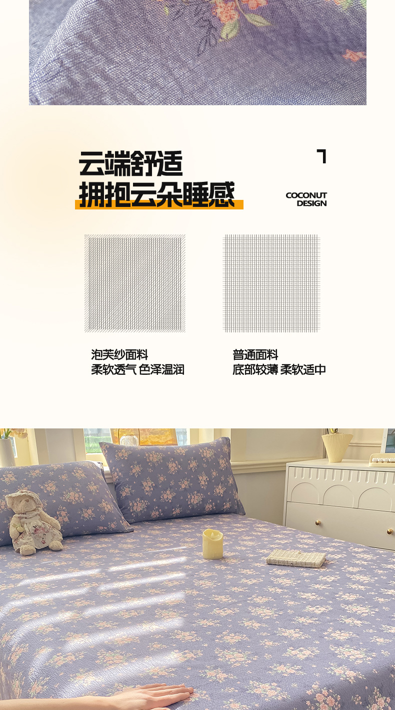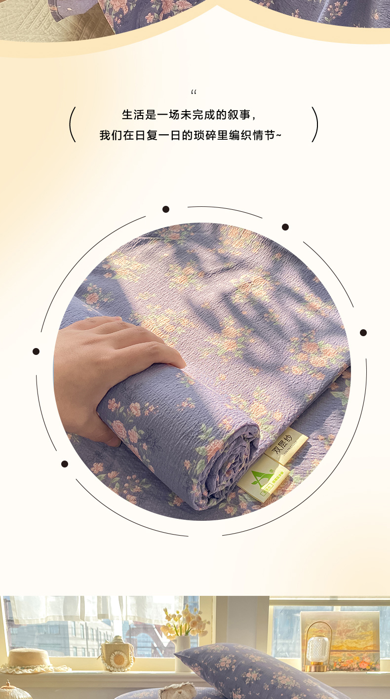 • 91家纺网 家纺一手货源 找家纺 晓时候 2026新款A类云感双层纱床单三件套单品单件床单 豆蔻