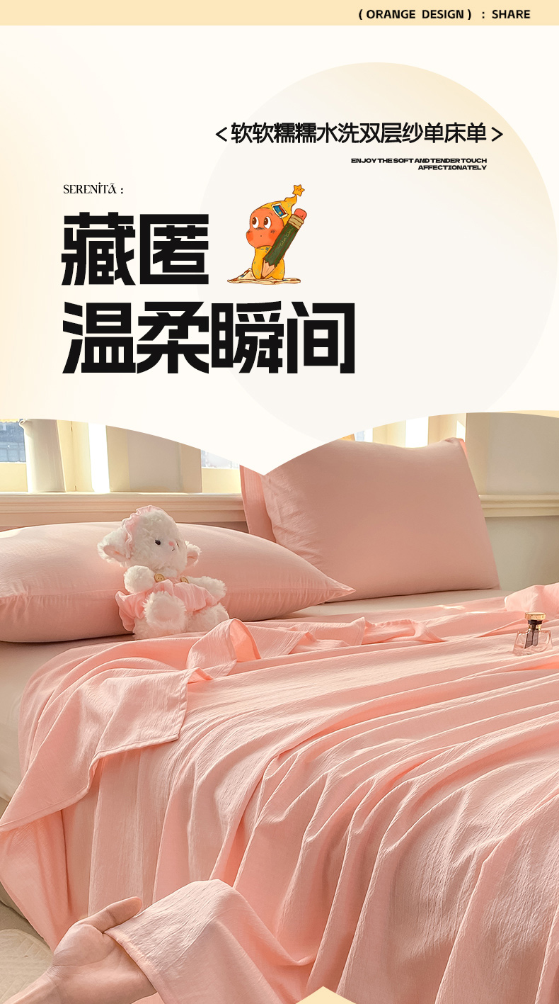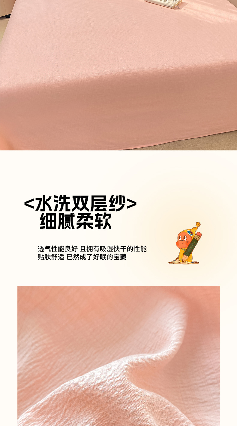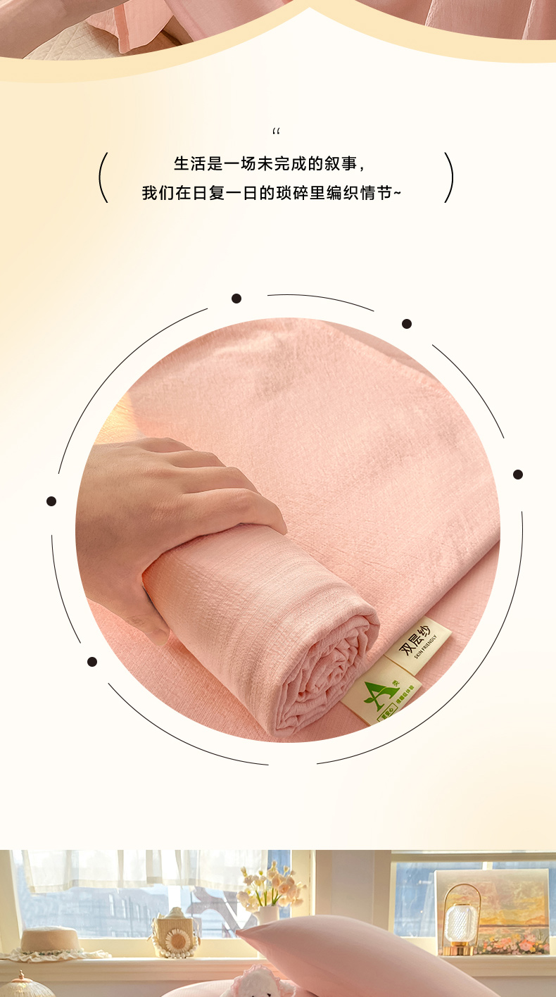 • 91家纺网 家纺一手货源 找家纺 晓时候 2026新款A类云感双层纱床单三件套单品单件床单 樱花粉