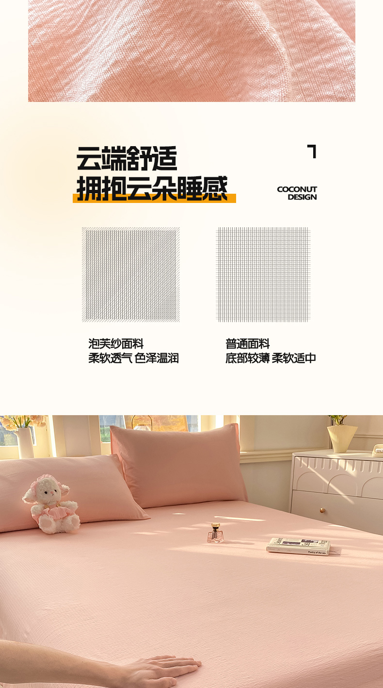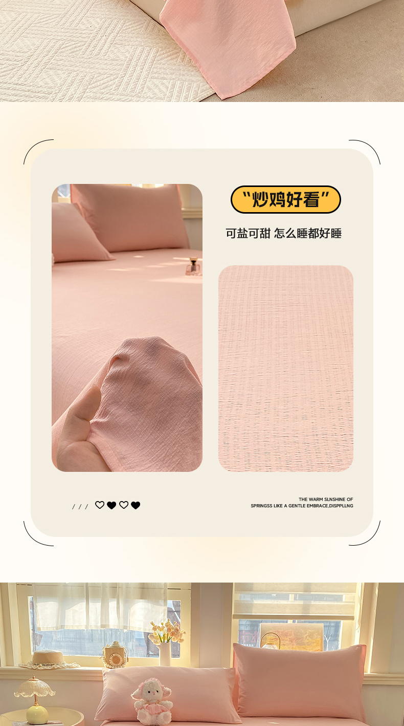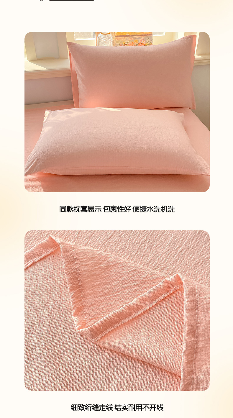 • 91家纺网 家纺一手货源 找家纺 晓时候 2026新款A类云感双层纱床单三件套单品单件床单 樱花粉