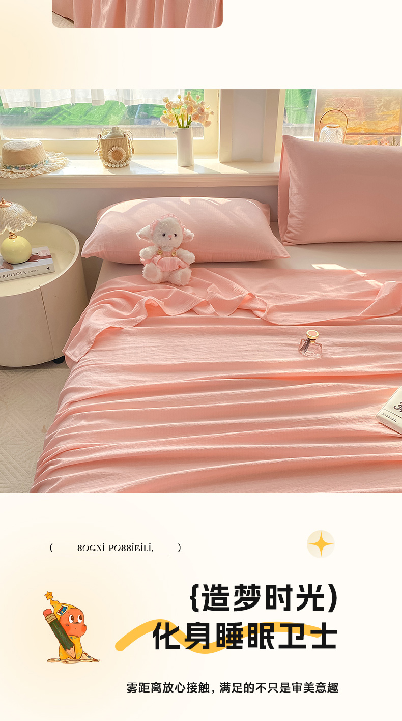 (总)晓时候 2026新款A类云感双层纱床单三件套单品单件床单,安然入夏,缤纷水果,冰川灰,豆蔻,多彩波点,繁花,蝴蝶结-紫,花间兔,蓝色泡芙狗,洛神花间,萌宠派对,萌萌星星人,奶芙狗,柠檬黄,芊芊花语,牵牛紫,俏皮狗,青春蓝,青竹绿,甜甜西高地,甜心女孩,小确幸,星星喵,樱花粉,云朵白