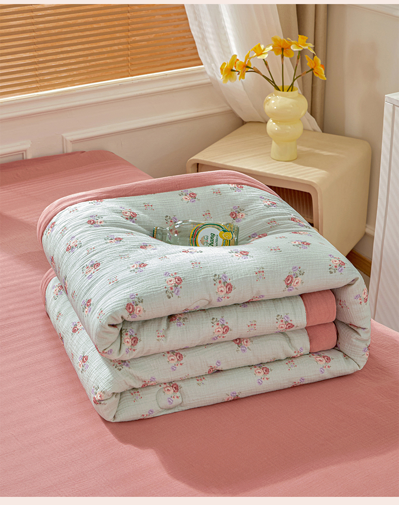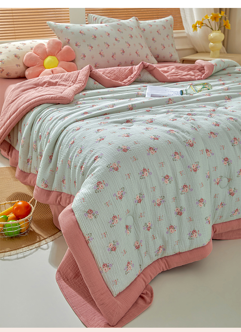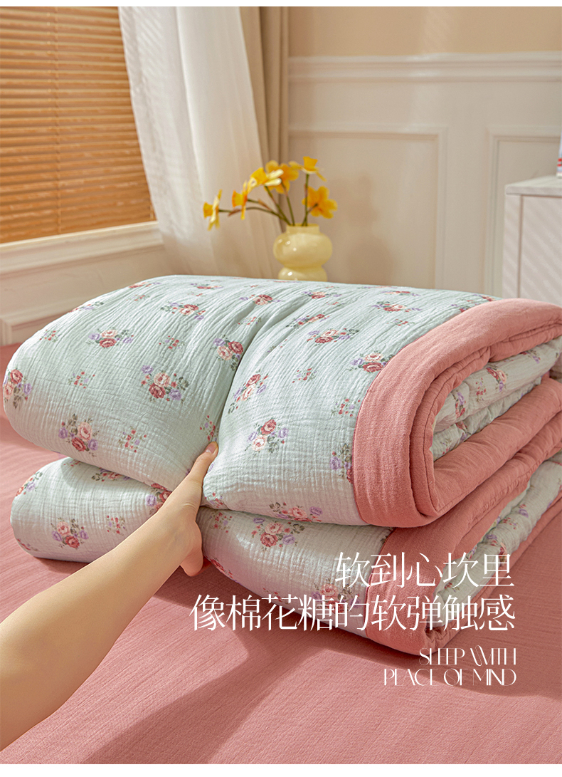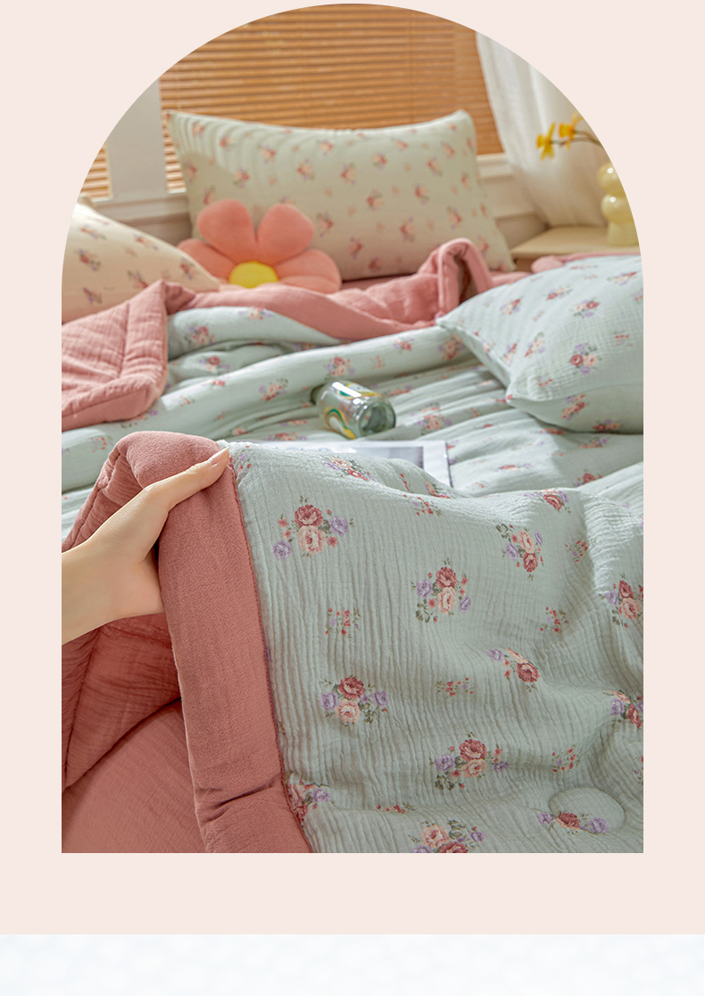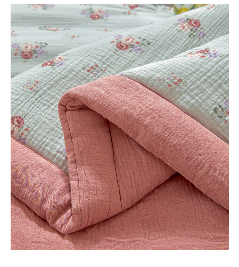 恬思语家纺 2026春夏新款里外全棉皱皱纱印花棉花夏被夏凉被空调被 醉嫣然
