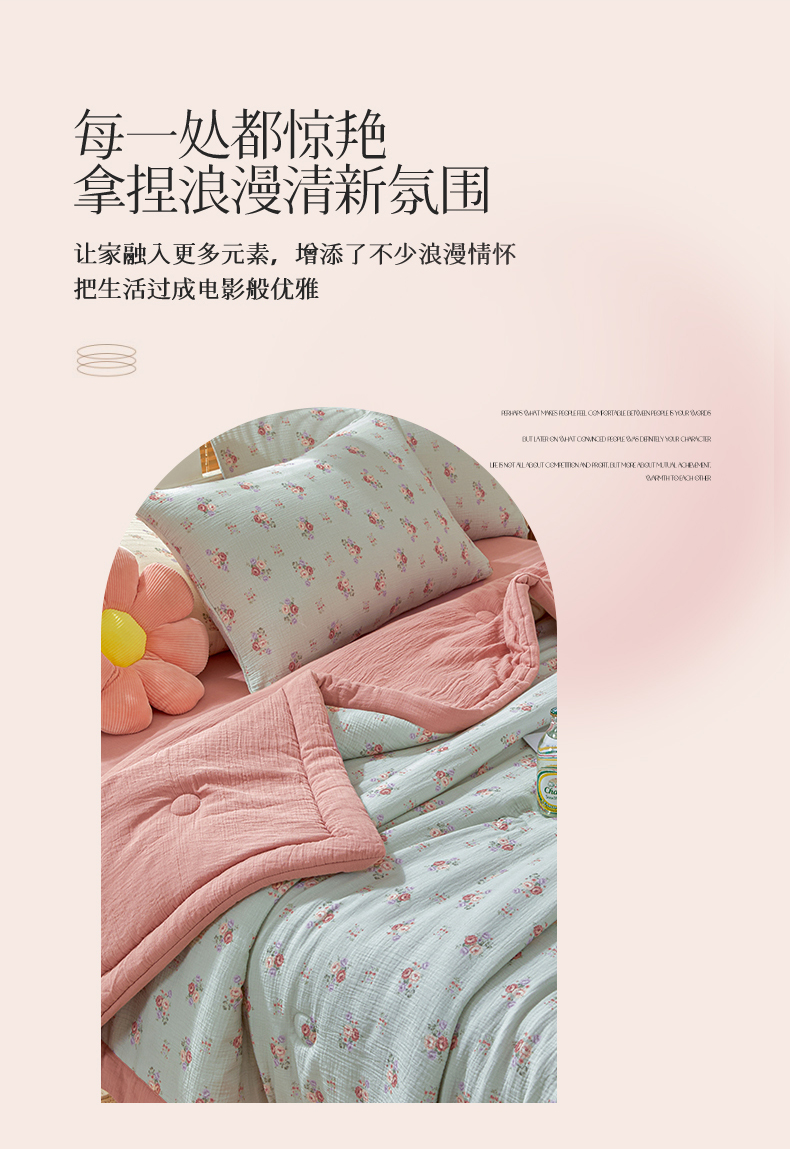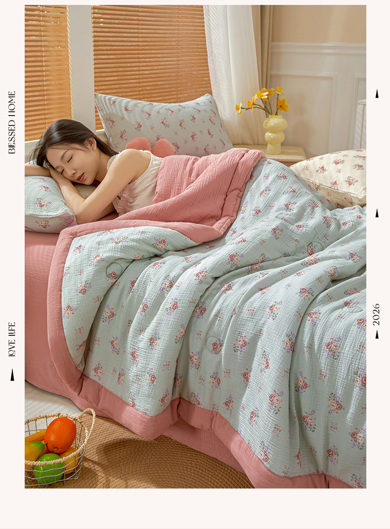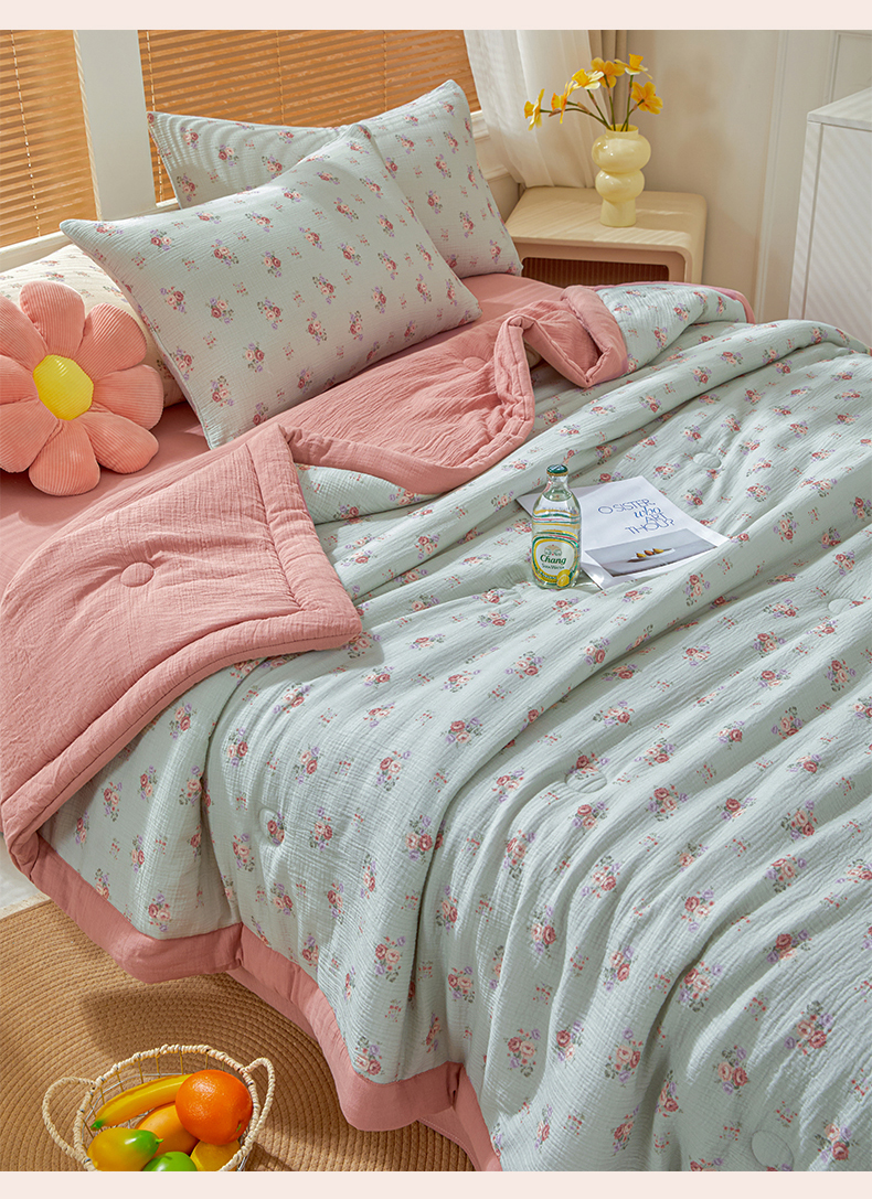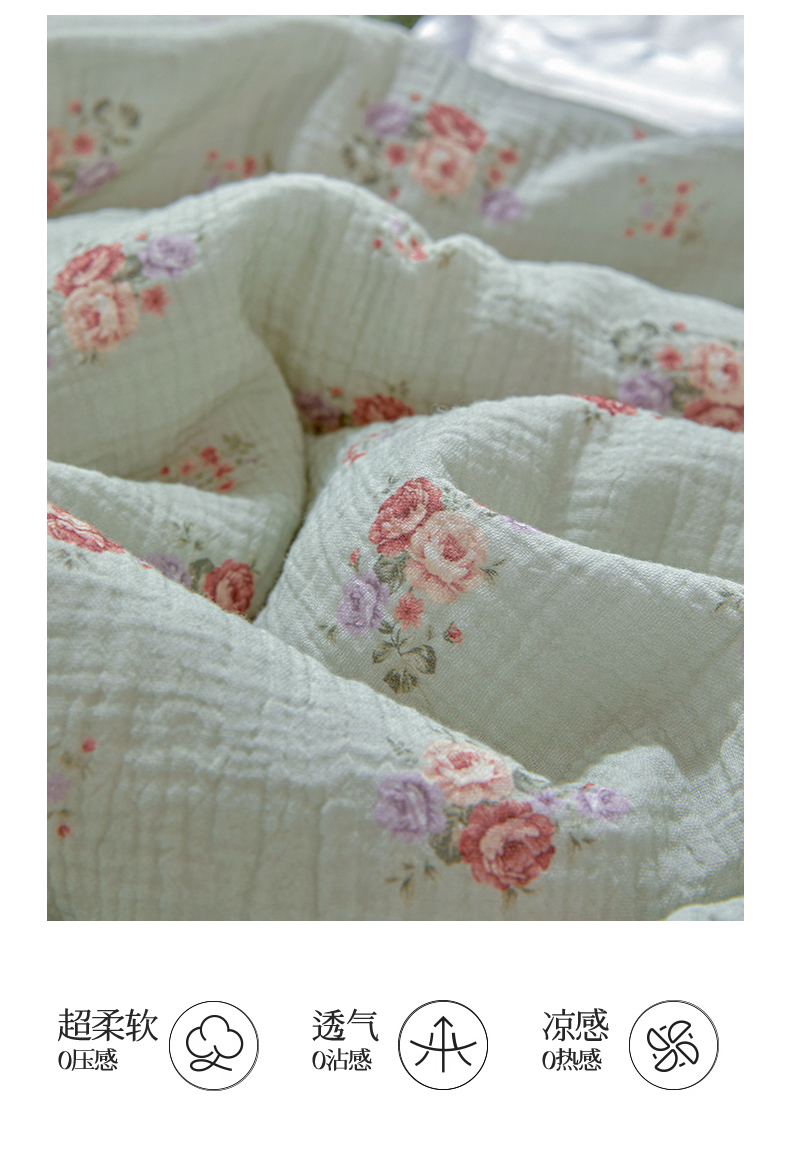 恬思语家纺 2026春夏新款里外全棉皱皱纱印花棉花夏被夏凉被空调被 醉嫣然
