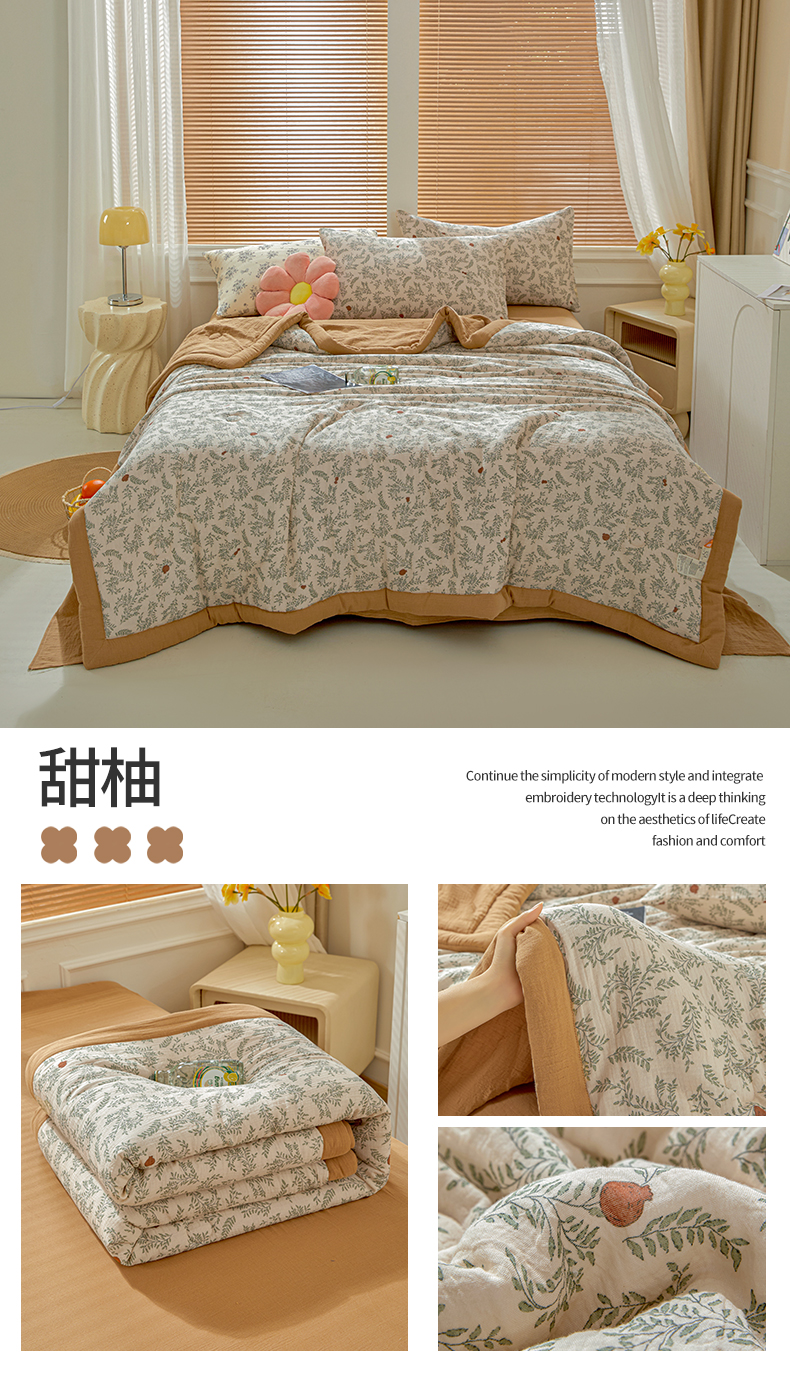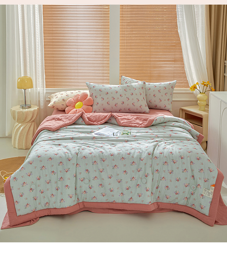 • 91家纺网 家纺一手货源 找家纺 恬思语家纺 2026春夏新款里外全棉皱皱纱印花棉花夏被夏凉被空调被 醉嫣然