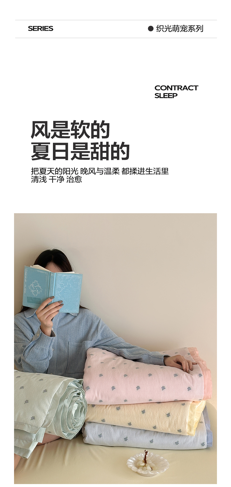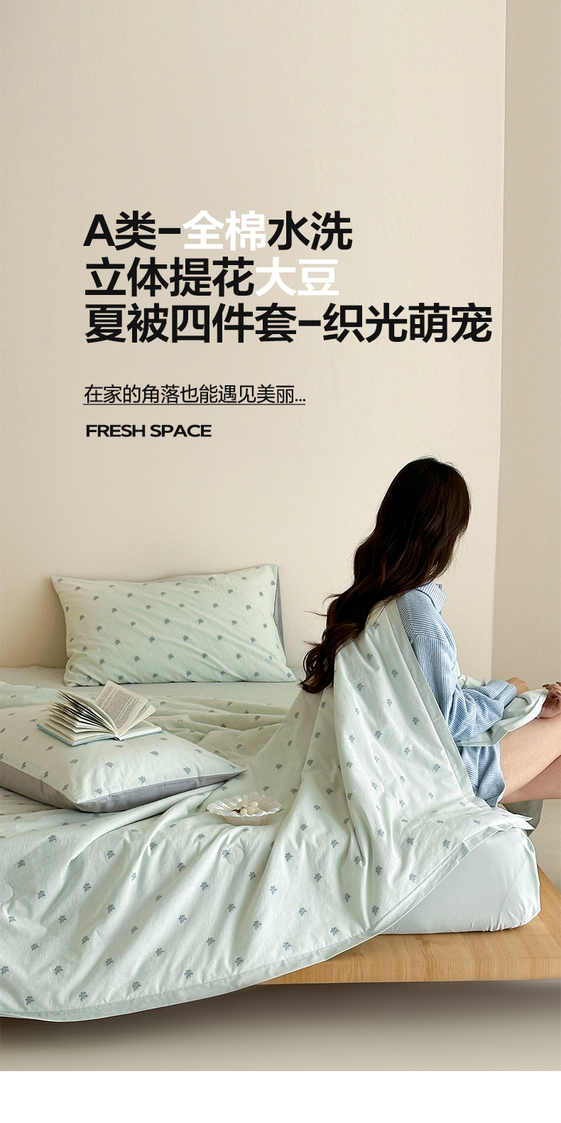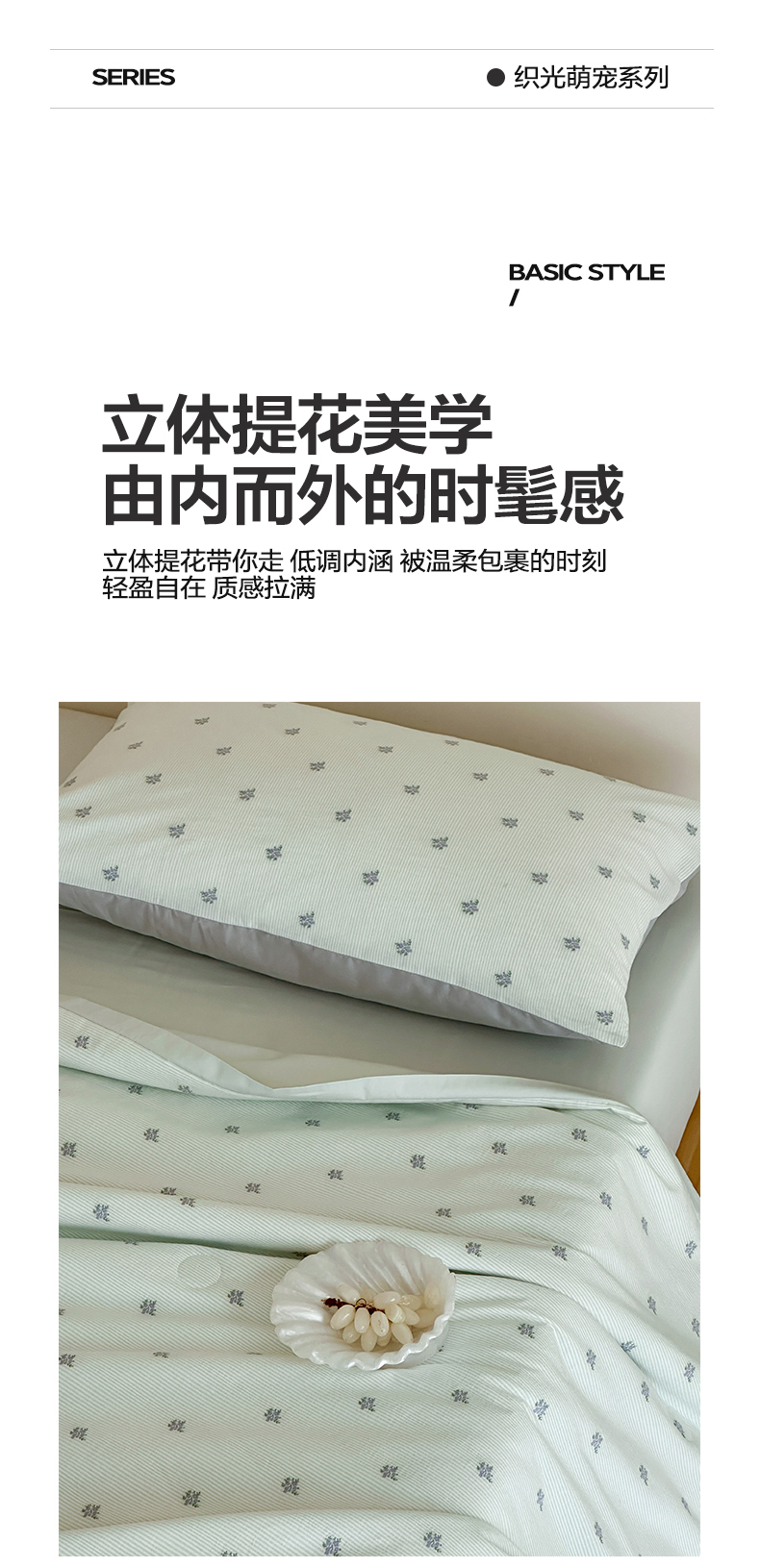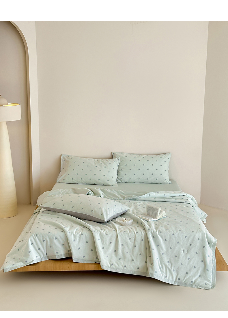 当前位置: 91家纺网 > 商品网购 > 床品套件 > 四件套 > 夏被四件套 > 一加一 2026新款A类全棉水洗立体提花大豆夏被四件套-织光萌宠 棉织花-绿