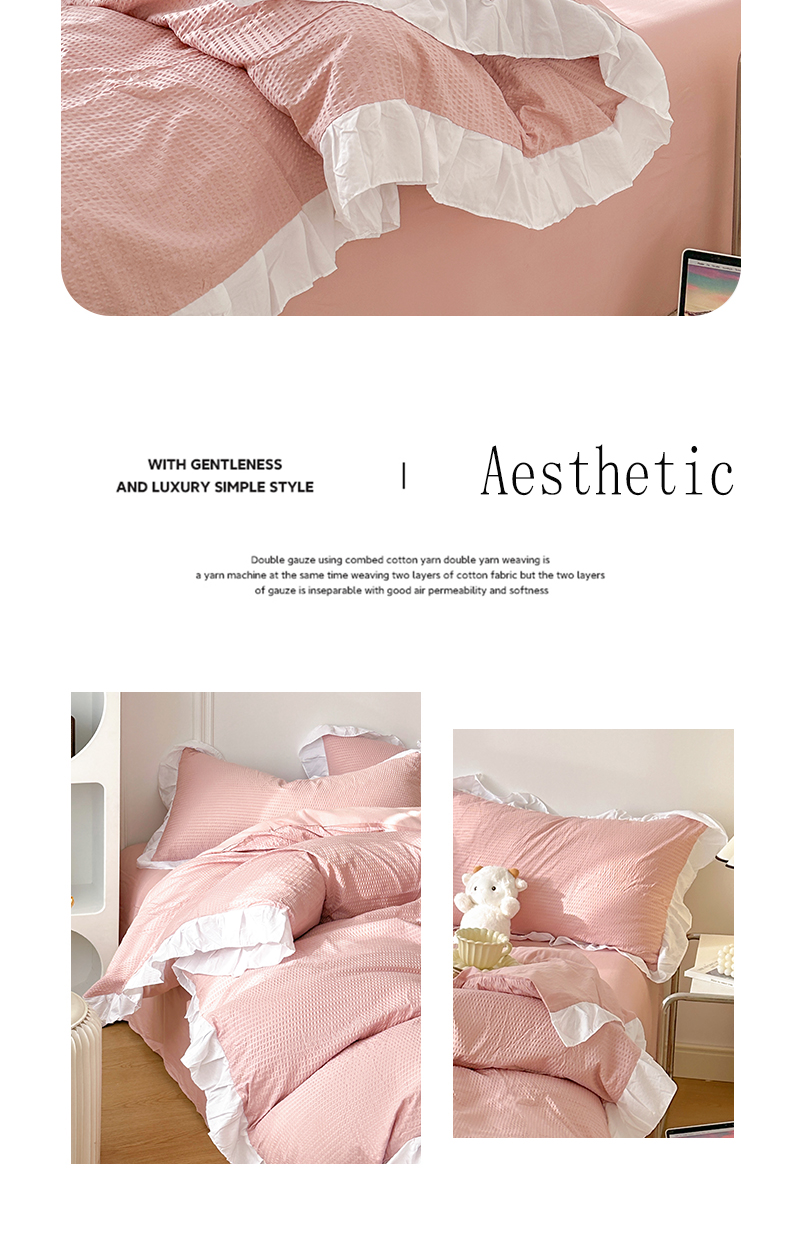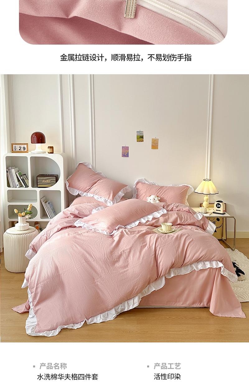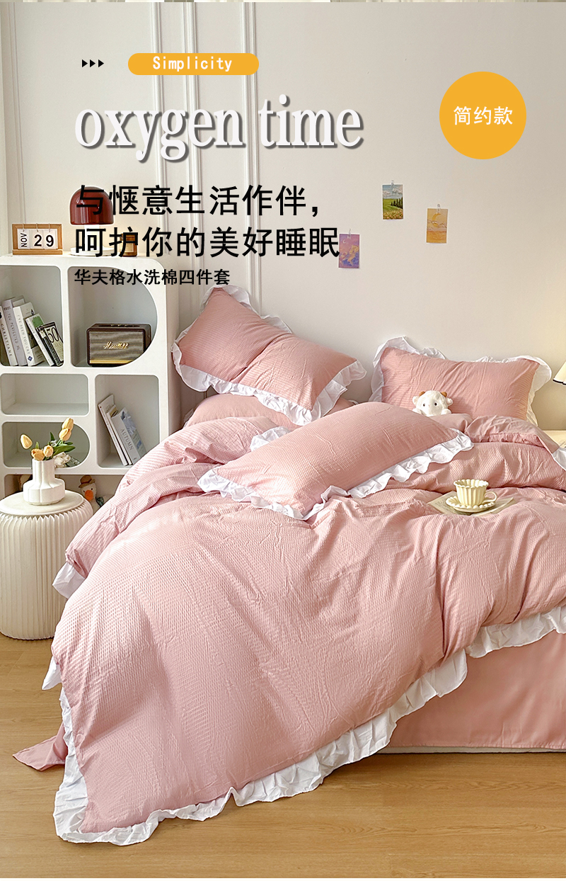 啊雅家居 2026新款轻奢韩式花边华夫格四件套-花边款 花边款 梦幻粉