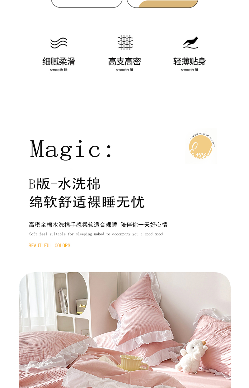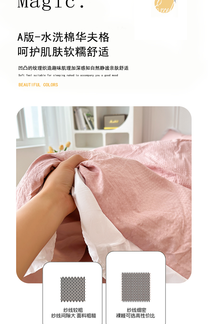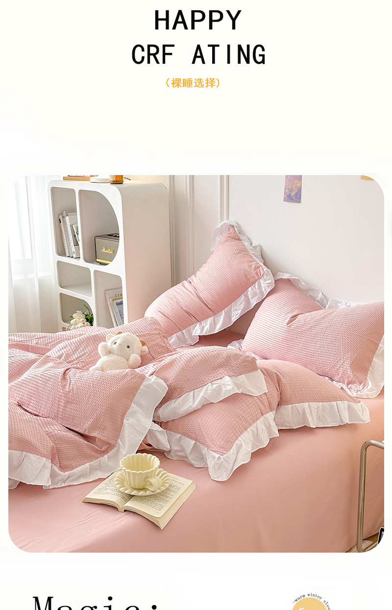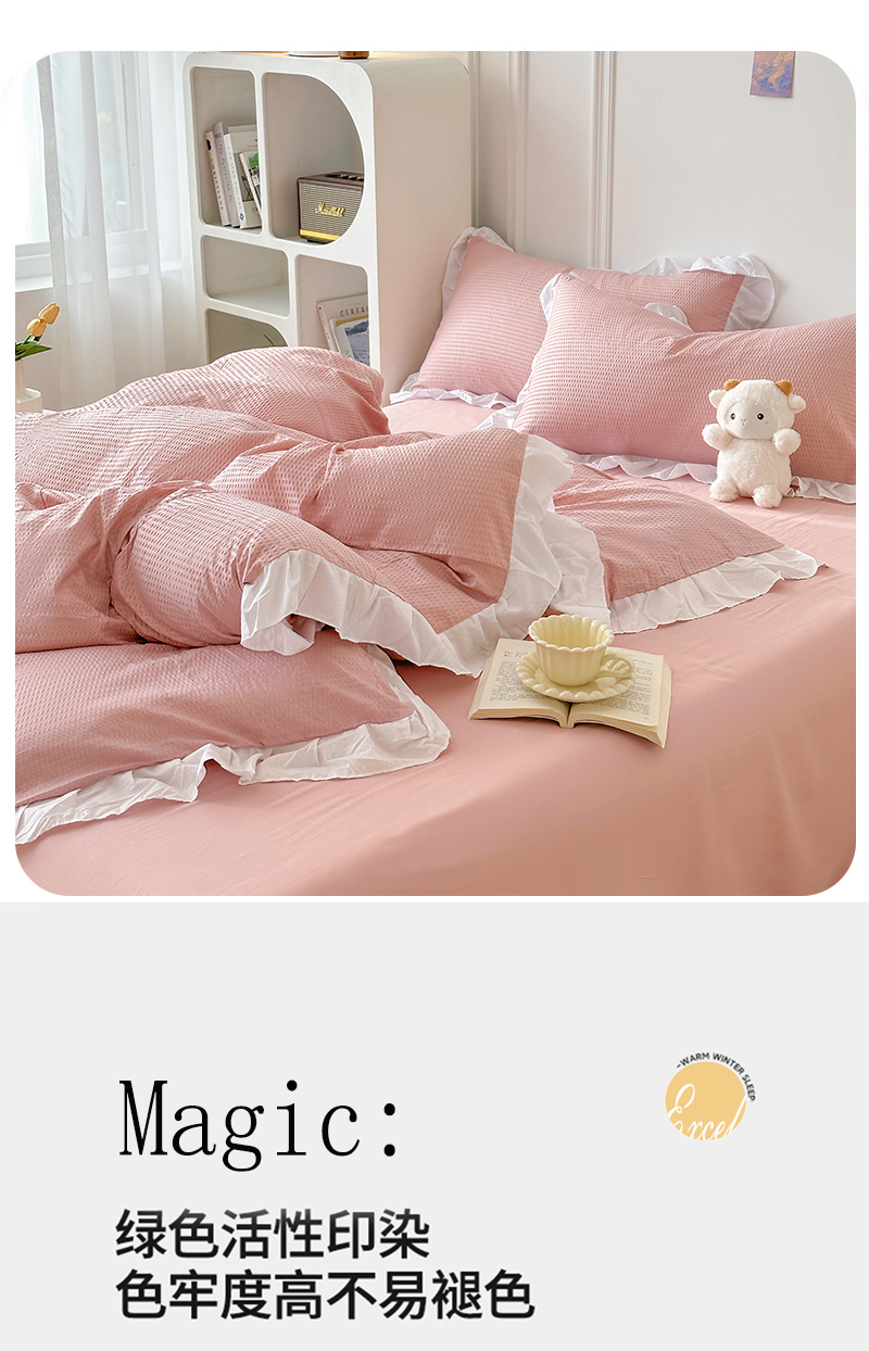 (总)啊雅家居 2026新款轻奢韩式花边华夫格四件套,梦幻粉,梦幻黄,梦幻灰,梦幻兰,梦幻绿