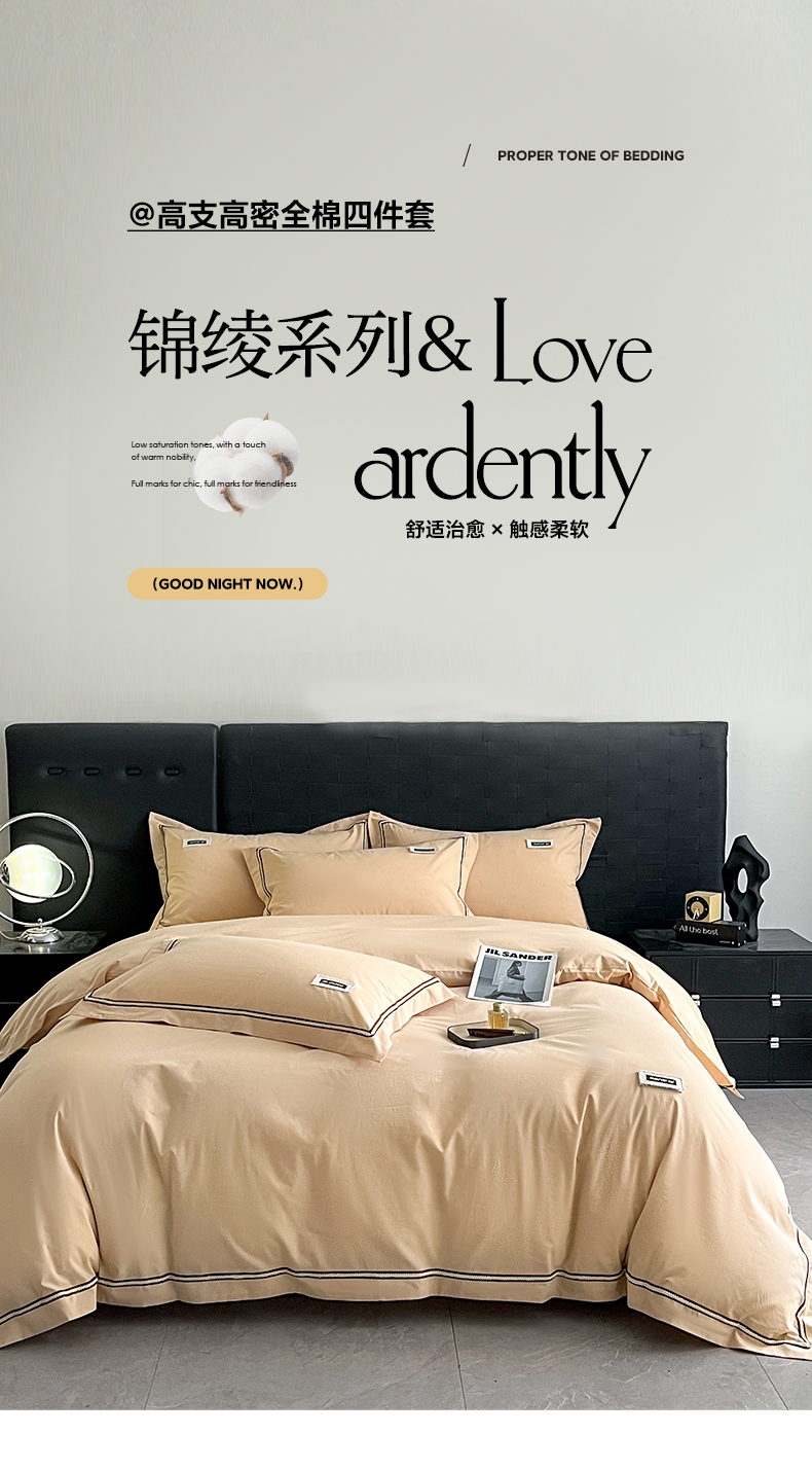 当前位置: 91家纺网 > 商品网购 > 床品套件 > 四件套 > 全棉普通四件套 > 佳汐蓝家纺 2026春夏新款高支高密全棉纯棉四件套-锦绫系列 锦绫-奶茶