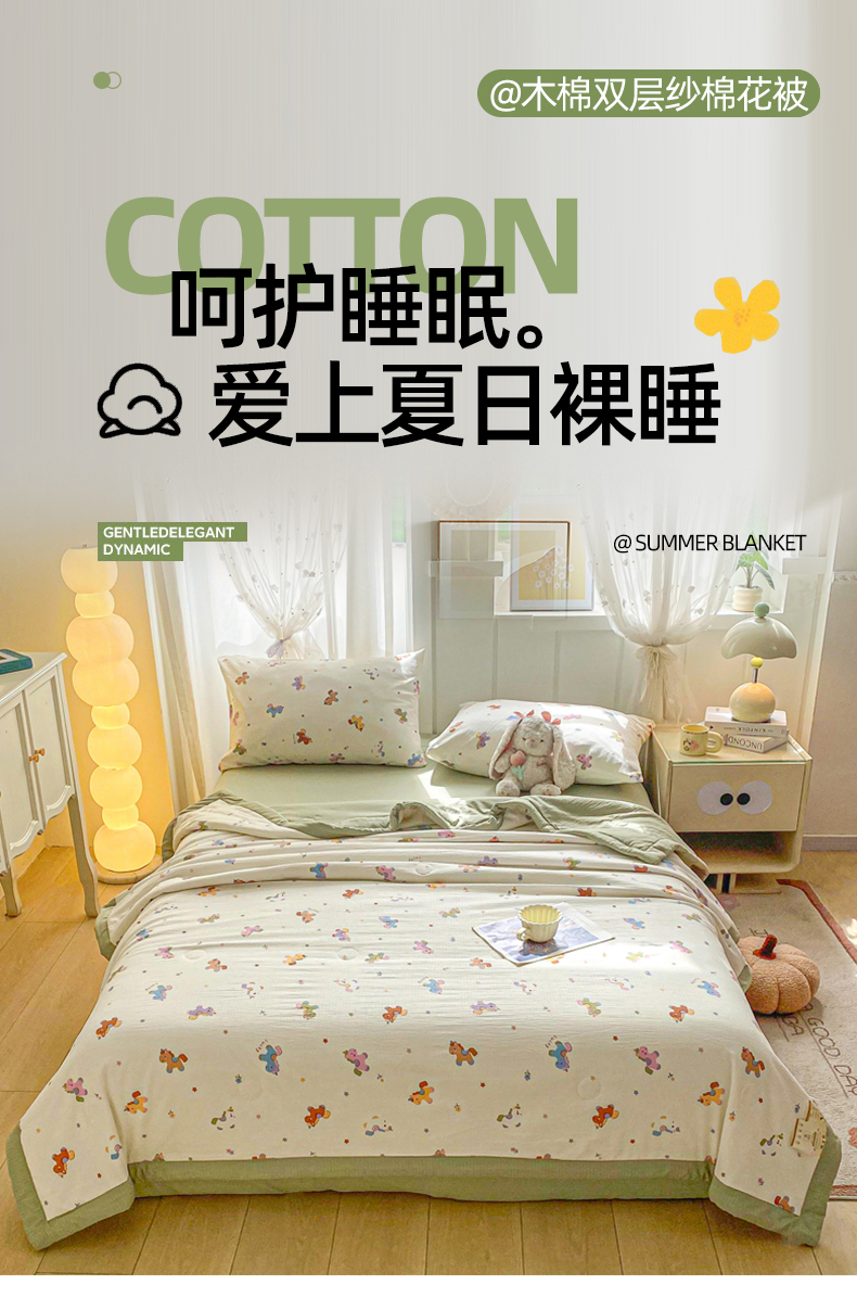 (总)爱屋及屋 2026新款小清新双层纱宽包边棉花被夏凉被空调被夏被,春日小猫,动感星星,繁花-蓝,花影,花之兔,蓝点点,蓝色小丫,萌宠集,奶油块块,苹果猫,像素KT,小熊猫,星星小马,云感-蓝,治愈小猫