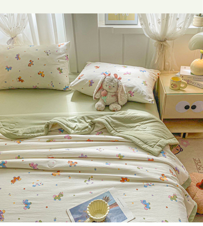 爱屋及屋 2026新款小清新双层纱宽包边棉花被夏凉被空调被夏被 星星小马