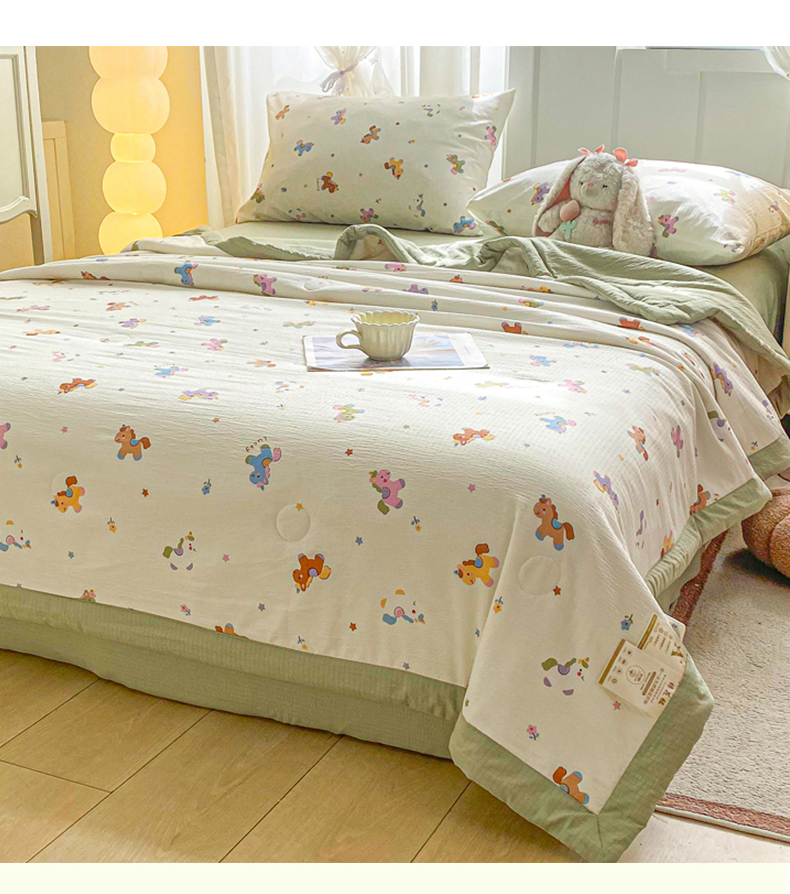 商品名称:爱屋及屋 2026新款小清新双层纱宽包边棉花被夏凉被空调被夏被 星星小马