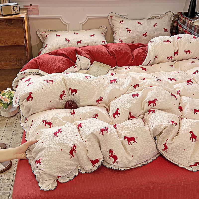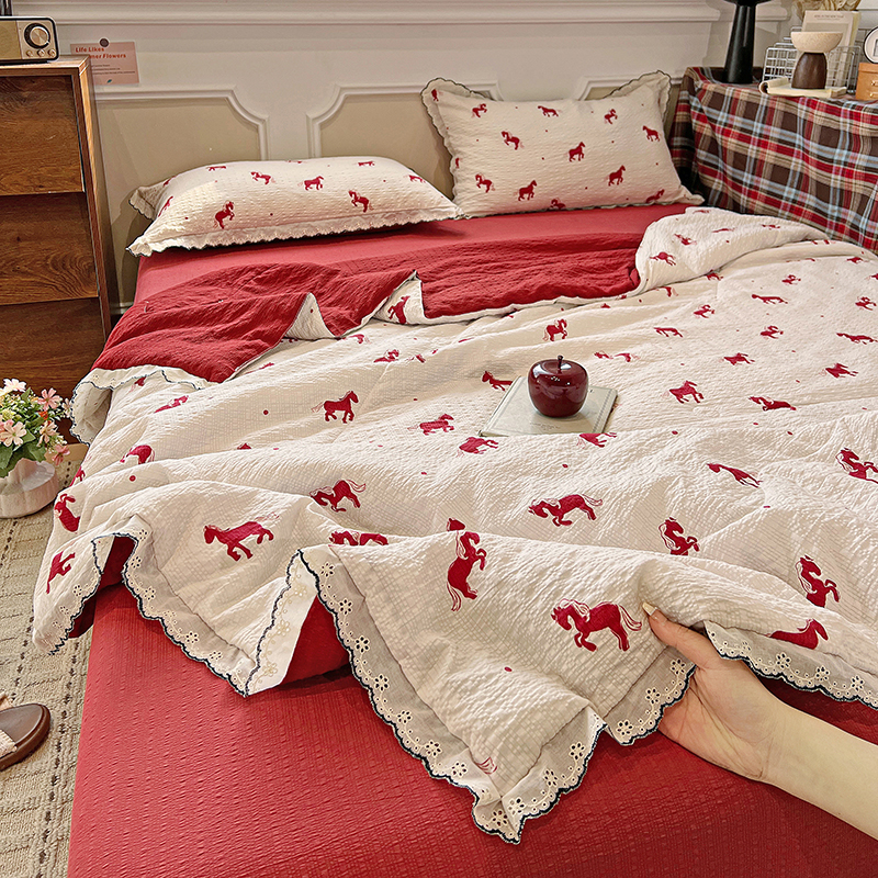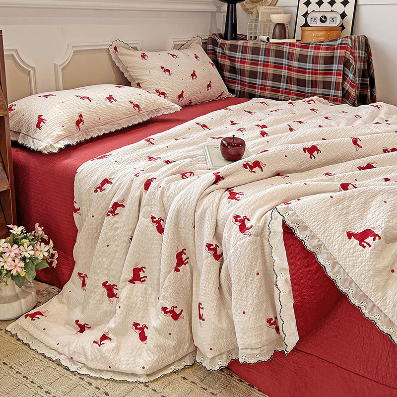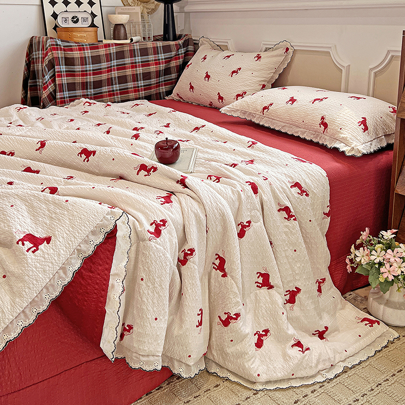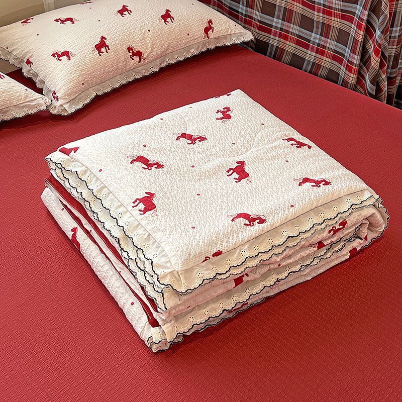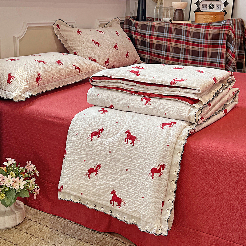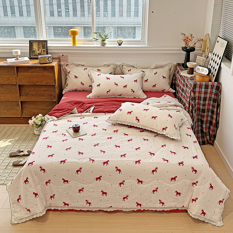 梦莱斯 2026新款印花夏被四件套 红色小马