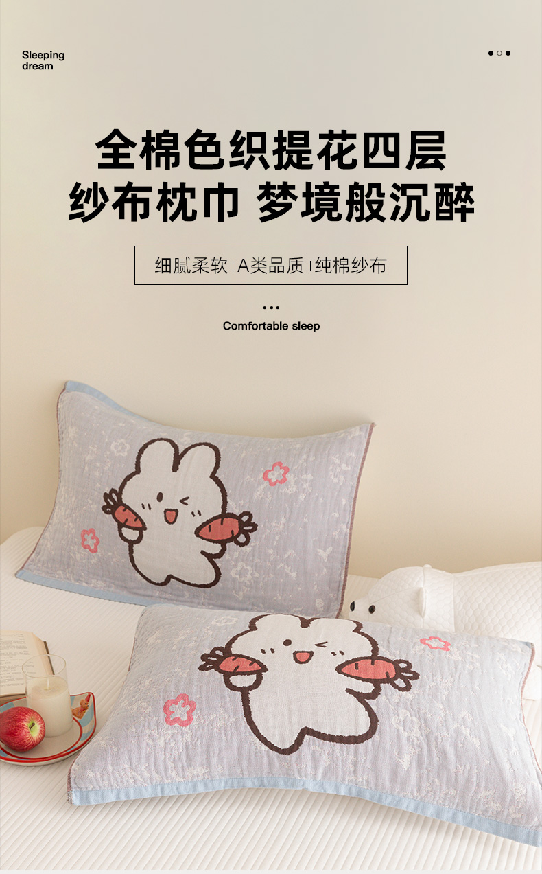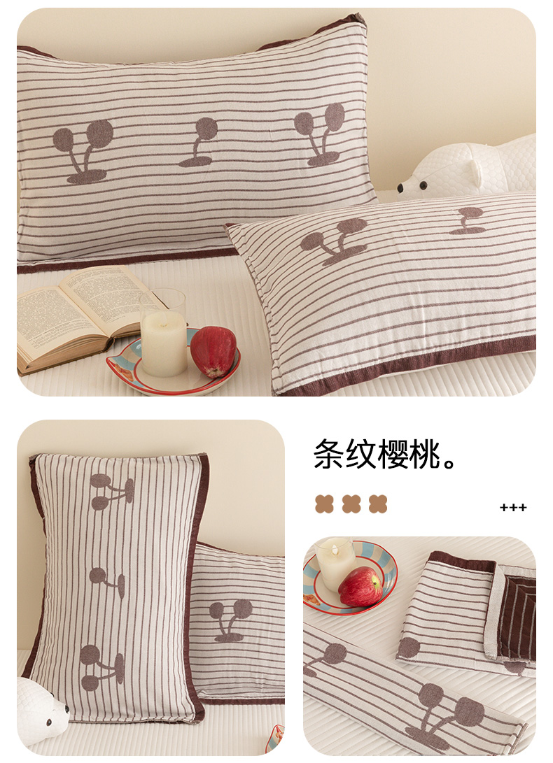 (总)乐家毛巾被(工厂自产自销) 2026新款四层色织全棉提花纱布软萌枕巾,白底条纹花,调皮小狗,粉底条纹花,黑猫小鱼,蝴蝶结,花花小熊,开心云朵,萝卜兔子,帽子熊,面包小猫,气球小熊,泰迪兄弟,条纹草莓,条纹鸭梨,条纹樱桃,眼镜猫,樱桃小狗,长鼻象,长耳狗,组合图