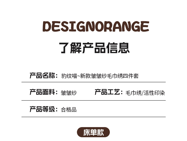 当前位置: 91家纺网 > 商品网购 > 床品套件 > 四件套 > 毛巾绣四件套 > 花伞家居 2026新款皱皱纱毛巾绣豹纹喵四件套含买家秀 小香猫-卡其豹纹
