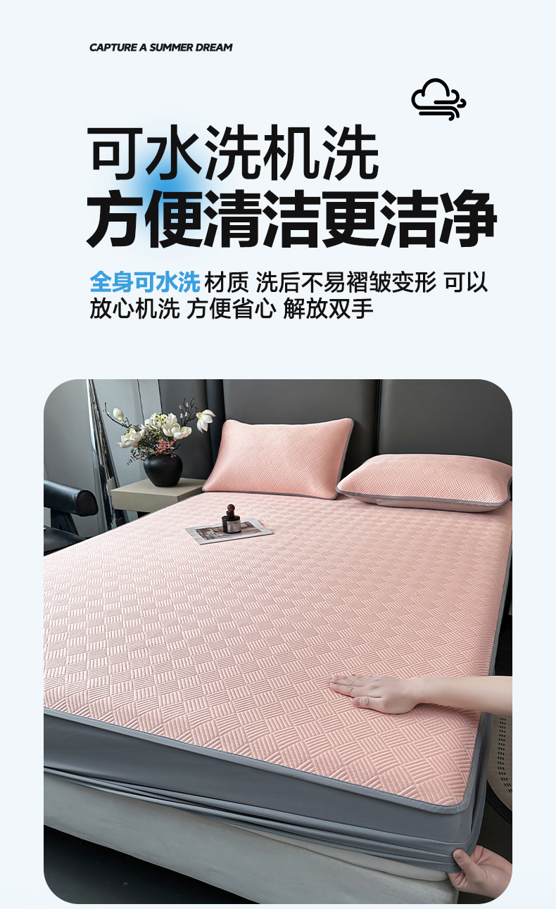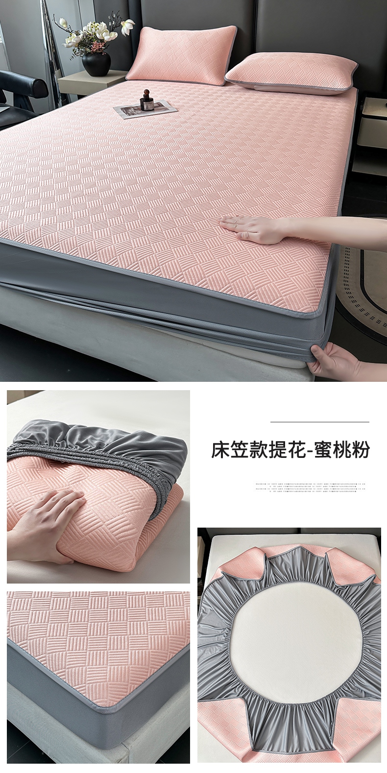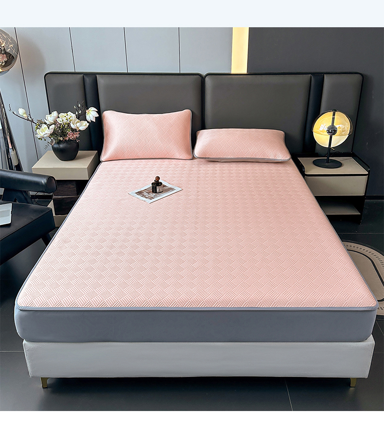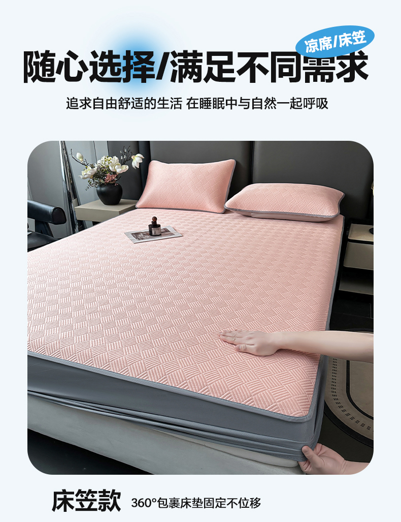 商品名称:乐家欣 2026新款提花凉感床笠款床席款软凉席 床笠款提花-蜜桃粉