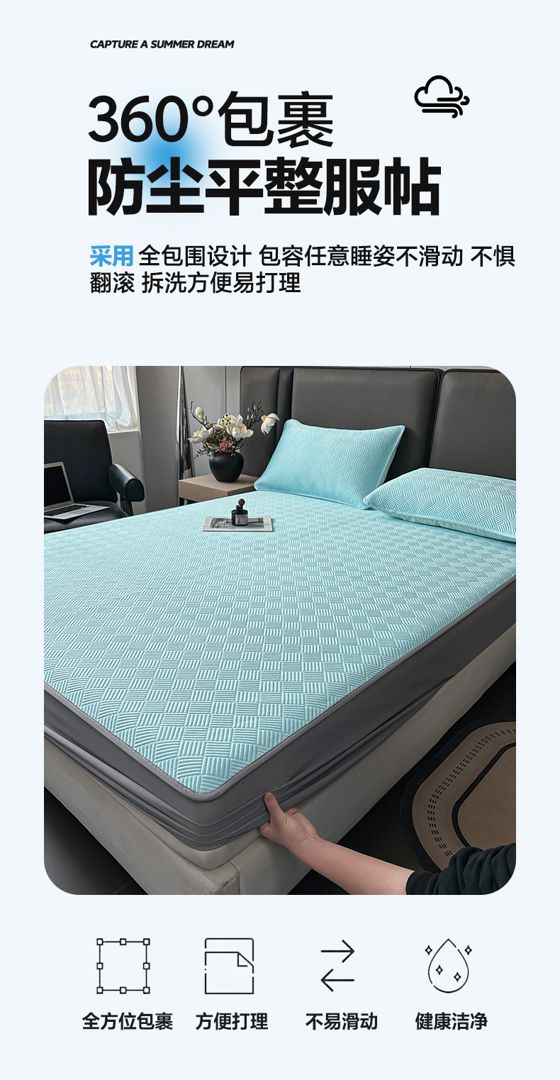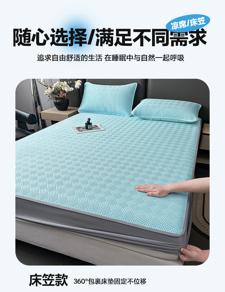商品名称:乐家欣 2026新款提花凉感床笠款床席款软凉席 床席款提花-清水蓝