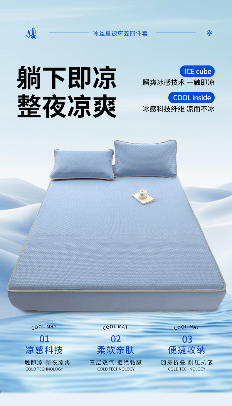 当前位置: 91家纺网 > 商品网购 > 床上用品 > 凉席 > 其他凉席 > 乐家欣 2026新款凉感冰丝夏被床笠四件套 床笠冰丝-宾利蓝