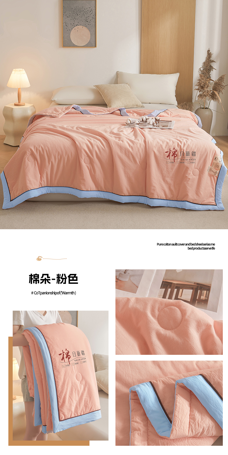 创优家纺 创优2025新品原棉被子被芯冬被春秋被直播爆款批发粉玉,A类超柔-粉玉