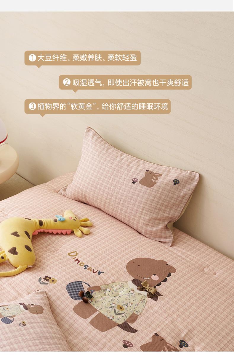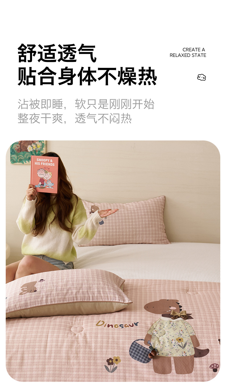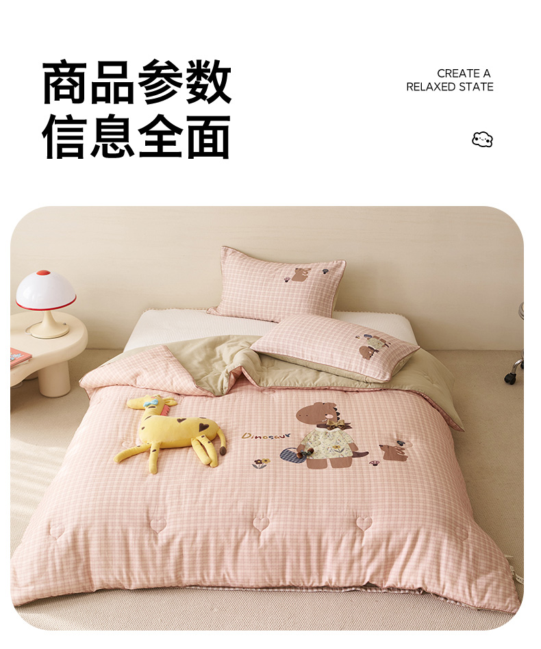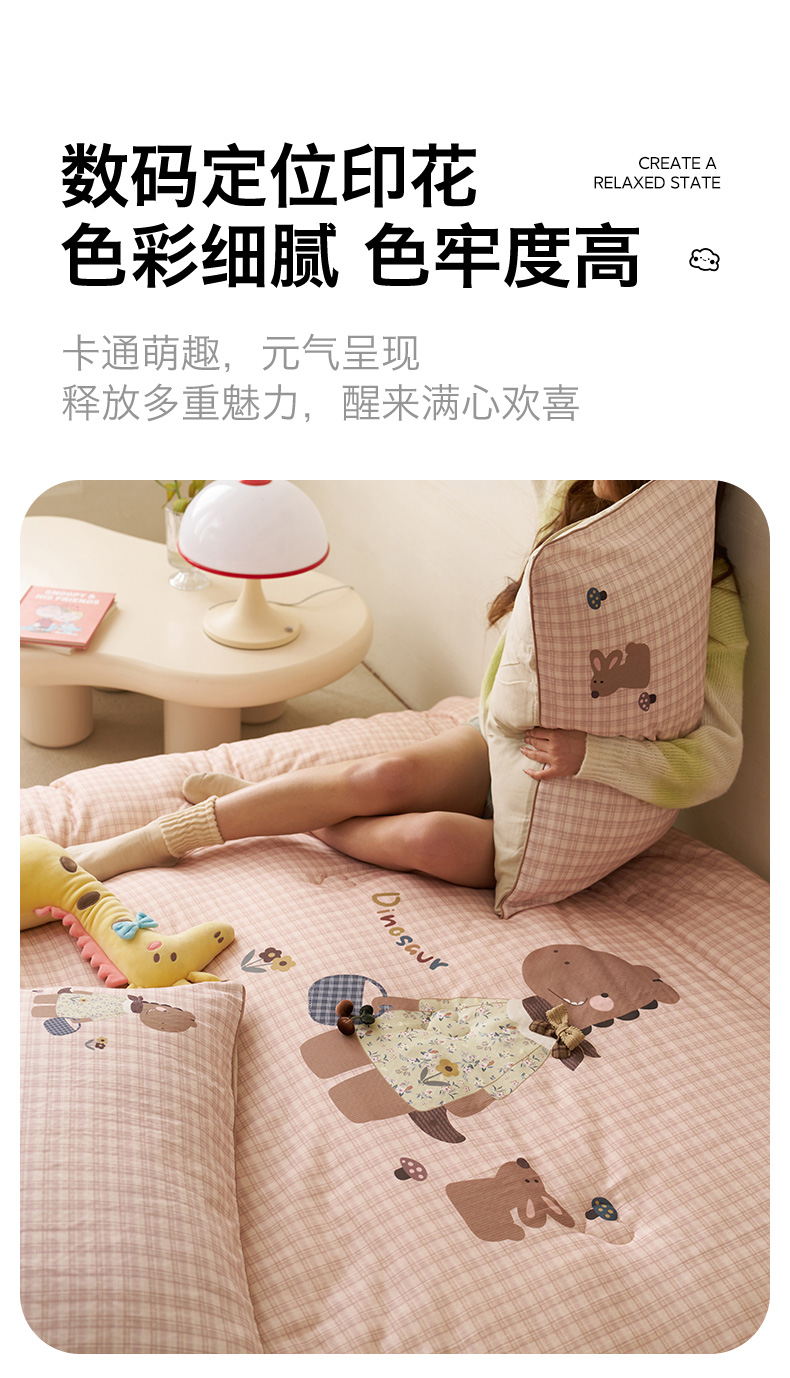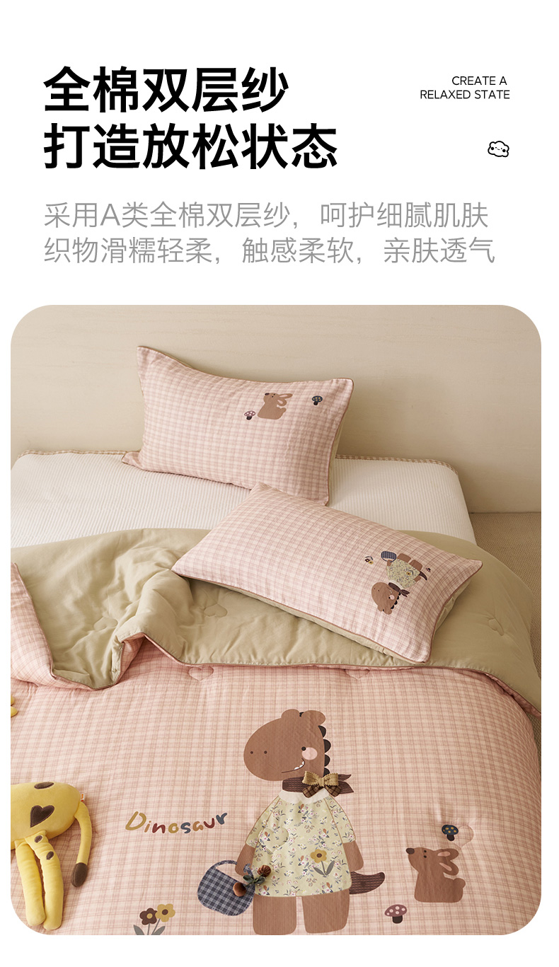 商品名称:久典家居 2026新款A类全棉双层纱数码定位花型春秋被夏被 小恐龙